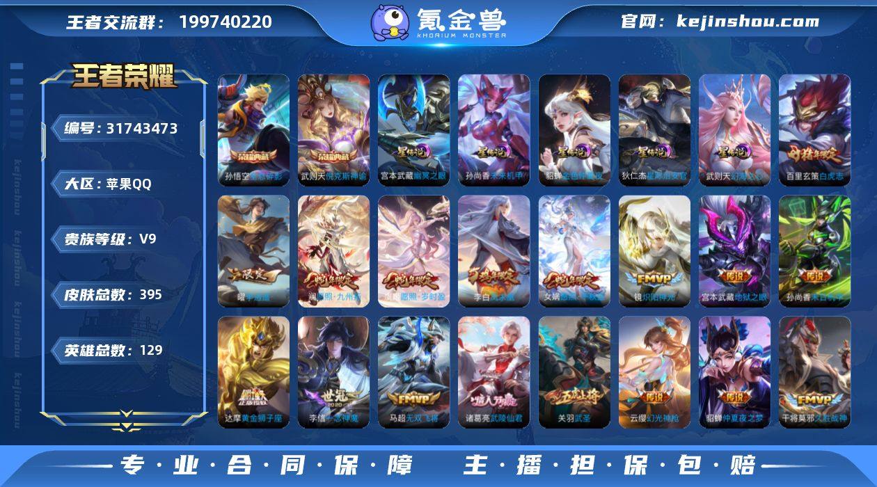 苹果Q-有二次-V9(163503分)-395皮-2典藏-有武则天-25传说-10000场-4按键-2天幕-【最新段位以实际为准,截图仅供参考】 【英雄全皮】:刘邦全皮,影全皮 【荣耀典藏】:武则天英雄,孙悟空全息碎影,武则天倪克斯神谕 【传说皮肤】:女娲愿照千秋盛,澜愿照九州拓,虞姬愿照岁时盈,云缨幻光神枪,孙悟空齐天大圣,百里守约碎云,马超无双飞将,曜李逍遥 ,镜炽阳神光,虞姬启明星使,孙悟空零号赤焰,关羽武圣,李信一念神魔,干将莫邪久胜战神,达摩黄金狮子座,百里玄策白虎志,后羿黄金射手座,诸葛亮武陵仙君,貂蝉仲夏夜之梦,李白凤求凰,孙尚香末日机甲,宫本武藏地狱之眼,孙悟空地狱火,武则天海洋之心,狄仁杰超时空战士 【限定皮肤】:白起狰,狄仁杰阴阳师,赵云皇家上将,赵云百木心枪,墨子神迹守卫,妲己时之奇旅,嬴政白昼王子,孙尚香蔷薇恋人,鲁班七号狮舞东方,庄周云端筑梦师,庄周高山流水,高渐离死亡摇滚,阿轲迷踪丽影,钟无艳王者之锤,钟无艳超时空战士,孙膑天狼运算者,扁鹊奇幻香踪,白起夜都怪侠,芈月重明,芈月幻夜卜梦,吕布猎兽之王,周瑜真爱至上,周瑜赤莲之焰,元歌云间偶戏,元歌无心,夏侯惇朔风刀,甄姬游园惊梦,甄姬落雪兰心,曹操烛龙,典韦穷奇,典韦蓝屏警告,马可波罗逐梦之星,马可波罗暗影游猎,狄仁杰魔术师,狄仁杰万华元夜,达摩星际陆战队,达摩沙漠行僧,项羽海滩派对,项羽霸王别姬,老夫子醍醐杖,老夫子航海奇遇记,关羽冰锋战神,关羽武圣,程咬金演武夺筹,露娜一生所爱,刘邦夺宝奇兵,韩信飞衡,韩信傲雪梅枪,王昭君凤凰于飞,王昭君午后时光,兰陵王驯魔猎人,兰陵王金庭之子,花木兰青春决赛季,亚瑟潮玩骑士王,孙悟空美猴王,孙悟空至尊宝,孙悟空大圣娶亲,孙悟空零号赤焰,孙悟空孙行者,孙悟空齐天大圣,牛魔御旌,后羿圣弓游侠,李元芳银...