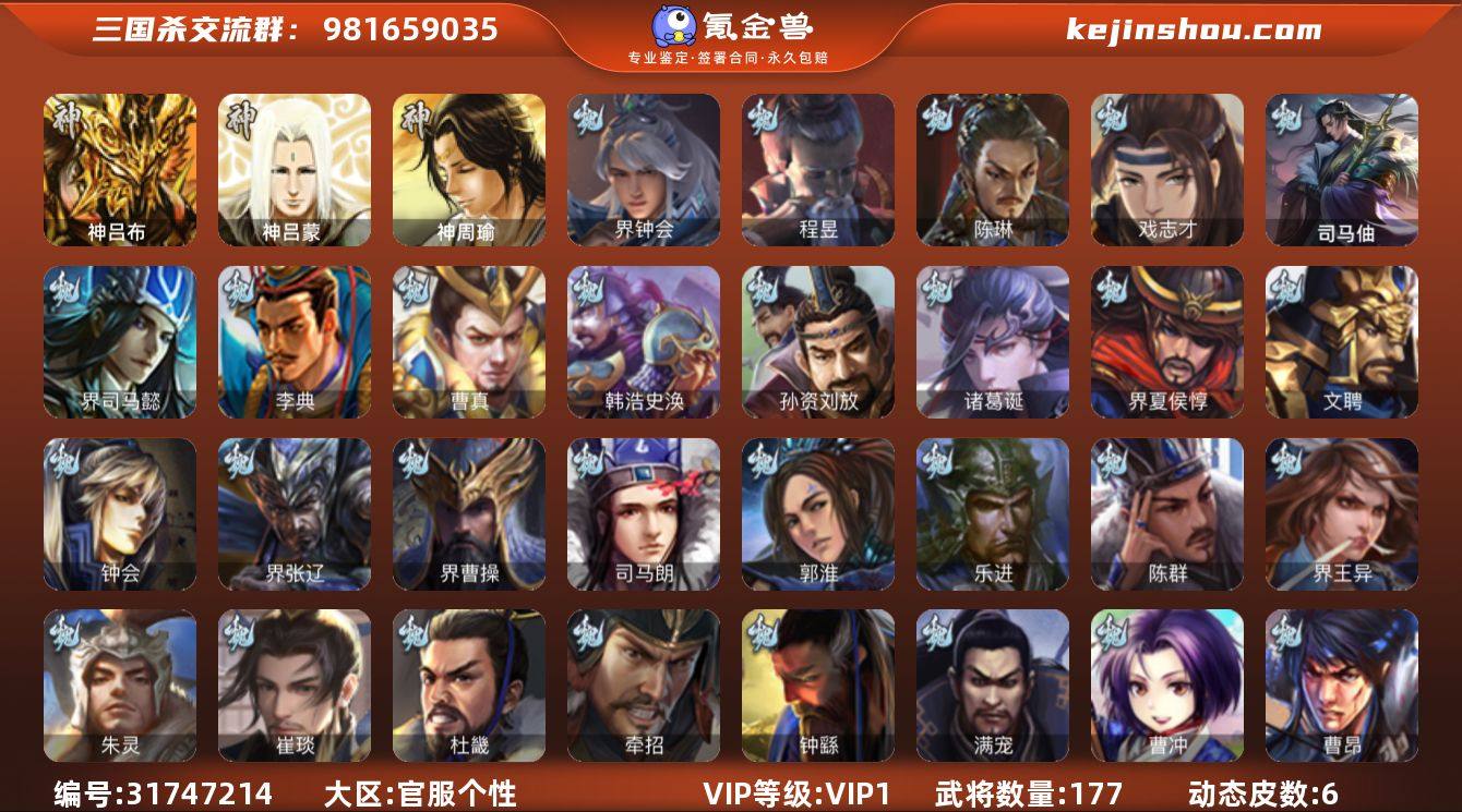 9史诗3神中军,友诸葛亮,回廊动大宝,回廊动白马,戏志才,界钟会,神吕布,谋赵云,陈琳,程昱9史诗,金皮天工李遗,动态孙茹,神周瑜,神吕蒙,真动界夏侯惇,带皮甘夫人,关银屏,谋韩当,界曹植,崔琰,彭恙,界马超,司马伷,牵招,金皮曹冲,金皮界王异,sp曹仁,张布,张翼,孙翊,诸葛恪,界朱治,界顾雍,刘琦,界刘表177将,国战59将,5.4万豆,满级活树