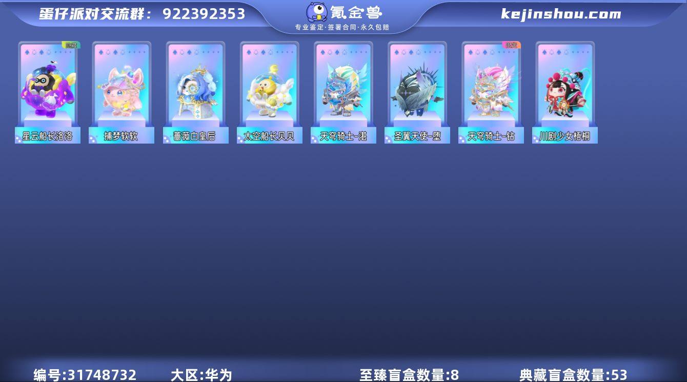 游戏:网易《蛋仔派对》 充值金额:累计充值168460蛋币,折合人民币1.68万+ 账号亮点: - 至臻限定皮肤:天穹骑士-钻、天穹骑士-湛双至臻,特效拉满,视觉冲击力强 - 热门联动皮:我妻善逸、灶门炭治郎、猪猪侠、奥特曼系列(赛罗、迪迦、泽塔、巴尔坦星人)、大祭司木西恩、大娃等,联动图鉴几乎全齐 - 稀有隐藏皮:星云船长洛洛、萤火偷偷、海藻偷偷等隐藏款,收藏价值拉满 - 大衣柜资源:盲盒数99,历史总潮流度7.3万,赛季潮流度拉满,包含川剧少女梧桐、圣翼天使-堕、蔷薇白皇后等大量古老赛季皮肤 - 历史荣耀:历史最高凤凰蛋印记,经典模式历史派对1196场、夺冠217次,实力与收藏价值兼备 - 账号来源:一手账号,支持换绑/验号,安全可靠