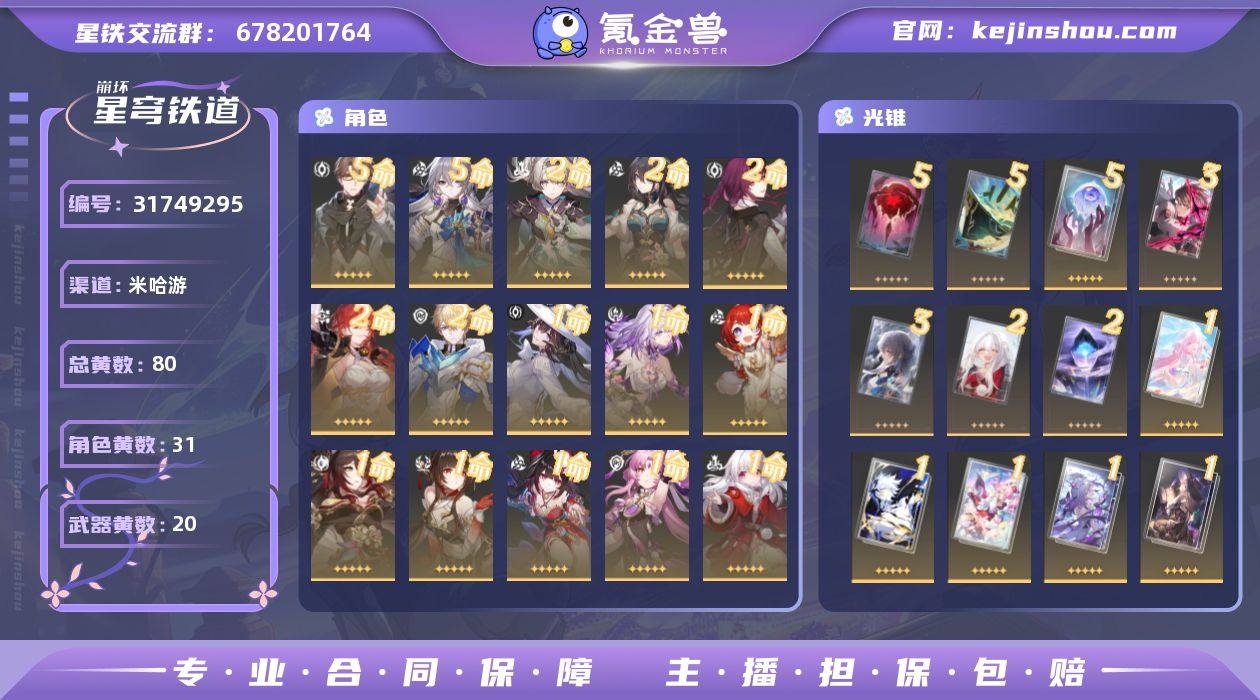 号上还有一发十连,已经是大保底,角色众多,另外还有原神账号(只不过不常玩了,59级),还有个玩了一段时间的绝区零账号(号上有仪玄和星见雅)