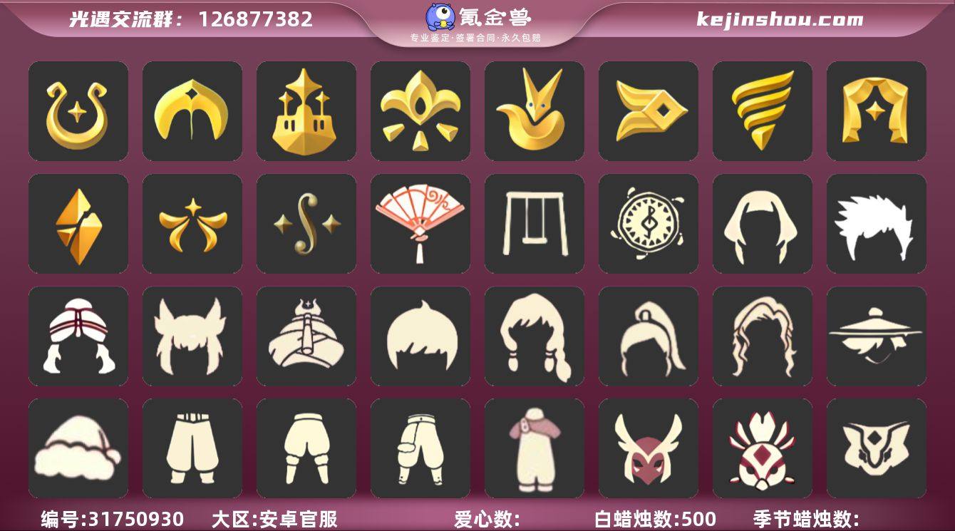 【编号Z8164】 【支持分期】 蜡烛数量:272 爱心:137 翼数量:136 身高:1.62-13.62/2.14 账号类型: 手机账号 季节已毕业: 预言季,梦想季,小王子季,风行季,潜海季,表演季,破晓季,欧若拉季,集结季,夜行季,追忆季,拾光季,归巢季,九色鹿季,筑巢季,二重奏季,姆明季,彩染季 完成地图: 晨岛,云野,雨林,霞谷,墓土,禁阁,全图毕业 珍稀物品: 阿努比斯(狗头),白枭,透明蝶翼斗,玫瑰花 礼包: 蝙蝠套,巫师,围巾,小狐狸,欧若拉之翼,九色鹿角,莲花斗,音乐桌,绊爱,大铁头,鹿角,荷叶伞,牛仔裤,兔子鞋,运动鞋,秋千,茶桌,餐桌,瑞雪,福娃,灯笼,风之旅人,橘子,黄伞,兔子,南瓜,雪花,电吉他,tgc,星月头饰,彩虹耳钉,彩虹耳机,新年裤,蝴蝶结,海螺,四叶草,暗彩装扮,向日葵套,爱心眼镜,火焰眼镜,飞蛾套,文雀套,雪人鞋,夹袄斗,新年耳钉,创始人,日光耳环,满月耳坠,线框斗,向日葵连衣裙,海龟斗篷,小狗周年发饰,青衫落拓礼包,小黄鸭雨衣套装礼包,小黄鸭发饰礼包,蝴蝶与花发饰礼包,活力海牛礼包 裤子: 武士裤,背带裤,白棉裤,搓澡巾 面具: 黄鼠狼,红狐狸,阿努比斯 面饰: 红耳机 项链: 围巾 发型: 蝴蝶结,正太,樱花,公主头,虚荣,猫耳 头饰: 花环 斗篷: 白金,红金,白鸟斗,花瓣斗篷,荧蓝斗篷 配饰: 雨伞,排箫,高音钢琴,吉他,笛子,大铃铛乐器,乐器 亮点: 重塑药水115,有双星季季卡