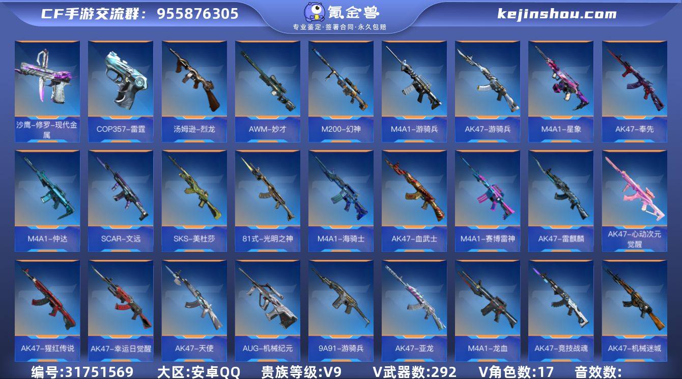 FC-QWER11 安卓QQ,成人号:是,角色等级:163,实名:有修改人脸机会/实名是本人,段位:大师S,VIP等级:V9,V武器数量:571,V角色数量:17,V总数量:292,王者武器数:28,万化数量:707, 【人物角色】孙悟空,牛妹,洛克,云悠悠,关小雨,海滩夜玫瑰,由乃,瞳,潜龙队,娜塔莎,太阳神-曦,大老师,堕天使,周年庆纪念赛斯,复仇者,运动宝贝兰,铁骑,洛伊,暗影,春节兰,圣诞灵狐,刀锋-2017,曼陀罗,幻影,夜玫瑰,潘多拉,奥摩,斯沃特,秦师,炽天使-X,武媚,杨玉凝,云悠悠-心动起点,蔡文昭,龙妹,木兰,奥妹,蜀雪,月神,雅典娜,变装舞会兰,赛丝,斯薇特, 【王者武器】王者之兽,蝴蝶刀-天神,M12S-雷霆王者,王者之蝶,雷霆王者之锋,M4A1-雷霆王者,王者之掣,王者之势闪光弹,王者之势手雷,王者之心手雷,王者之心烟雾弹,王者之心闪光弹,王者之势烟雾弹,闪光弹-雷霆王者,烟雾弹-雷霆王者,高爆手雷-雷霆王者,王者之心,王者之影,王者之魄,王者之怒,王者之魂,王者之锋,王者之啸,王者之迹,王者之神,王者幻神,王者之狱,王者之腾, 【至尊套装】蝶至尊,霆至尊,M4A1-雷霆王者至尊,巴雷特-雷霆王者至尊,M12S-雷霆王者至尊,怒至尊,心至尊,...