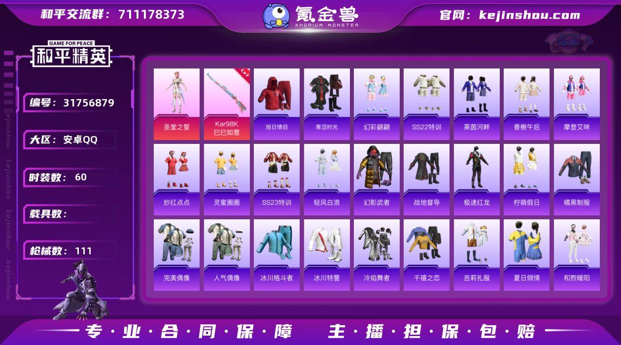 HX9008【吃鸡王者连体号-2粉装1特效枪2王牌印记-114套装109枪皮36948热力值-王者72皮肤1传说】Q等级26(1太阳)(吃鸡王者)一体号72皮肤1传说14史诗20限定-可二次 安卓Q-2粉装1特效枪3热门114套装109枪皮 36948热力值 2印记 历史超级王牌4星 【2粉装】 圣堂之誓 幻彩电音 【1特效枪】 Kar98K-巳巳如意 (5级) 【3热门】海盐绵绵冰 大橘大利 春光漫游 角色-情公主 龟仙人 破蛋小黄鸡 极速红龙安卓Q区-2粉装-1特效枪-37564热力值-2王牌印记-115套装-111枪皮【优质套装】: 幻彩电音 圣堂之誓【特效枪等级】:Kar98K-巳巳如意(五级- Kar98K-巳巳如意)【优质武器皮肤】: Kar98K-巳巳如意【稀有武器皮肤】: DBS-乌木金纹 蜜獾-精灵梦叶罗丽 SCAR-L-海盐豹豹 GROZA-海盐豹豹 Kar98K-巳巳如意 MG3-桃粉嫣然 蜜獾-乌木金纹 M416-糯团青竹 AKM-彩虹符号 AKM-龙的传人 AKM-霓虹街区 SCAR-L-红色方程式 SCAR-L-炫彩节奏 M16A4-蓝色火焰 M16A4-幻世战舞者 GROZA-田园牧歌 GROZA-懵萌河马 AUG-耀粉歌者 AUG-天降萌叽 M762-第五大道 M762-天降萌叽 Mk47-乌木金纹 Mk47-炫光之旅 Mk47-妙红点点 G36C-懵萌河马 AC-VAL-天降萌叽 AC-VAL-快闪甜心 AC-VAL-乌木金纹 蜜獾-天降萌叽 Kar98K-彩虹符号 M24-歌者泠鸢 M24-炫彩节奏 AWM-焰鹰斗篷 AWM-飒粉甜心 Win94-星兔领航员 莫辛纳甘-乌木金纹 莫辛纳甘-懵萌河马 AMR-乌木金纹 AMR-妙红点点 M200-惊鸿侠骨 SKS-糯团青竹 SKS-炫彩节奏 VSS-田园牧歌 VSS-彩虹符号 Mini14-旋转彩虹 Mini14-耀粉歌者 Mini14-涂山之恋 SLR-彩虹符号 M417-惊鸿侠骨 20-H-快闪甜心 UZI-红色方程式 UZI-天降萌叽 UZI-啾咪啾咪 UM