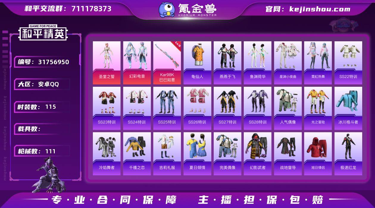 【FK6290】115套装/枪械1/装备128/战备104/王牌印记2/热力值37564/五级Kar98K-巳巳如意/龟仙人/圣堂之誓/幻彩电音/Kar98K-巳巳如意/甜蜜誓约降落伞/洛神天依降落伞/音爆索尼克降落伞/第五大道降落伞/纯梦嫁纱降落伞/萌酷奶龙降落伞/圣堂之誓降落伞/辉耀战甲降落伞/未来领航者降落伞/月下星之子降落伞/星穹咏叹调降落伞/燕燕于飞/鱼渊荷华/星渊小夜曲/霓虹热舞/AKM-彩虹符号/AKM-霓虹街区/AKM-龙的传人/M16A4-幻世战舞者/M16A4-蓝色火焰/SCAR-L-炫彩节奏/SCAR-L-红色方程式/M416-糯团青竹/GROZA-懵萌河马/GROZA-田园牧歌/AUG-天降萌叽/AUG-耀粉歌者/M762-天降萌叽/M762-第五大道/MK47-妙红点点/MK47-炫光之旅/G36C-懵萌河马/AC-VAL-天降萌叽/AC-VAL-快闪甜心/蜜獾-天降萌叽/UZI-啾咪啾咪/UZI-天降萌叽/UZI-红色方程式/UMP45-繁龙极客/UMP45-涂山之恋/UMP45-生命誓言/Vector-焰鹰斗篷/Vector-田园牧歌/汤姆逊-天降萌叽/汤姆逊-炫彩节奏/汤姆逊-耀粉歌者/P90-快闪甜心/Kar98K-彩虹符号/M24-歌者泠鸢/M24-炫彩节奏/AWM-焰鹰斗篷/AWM-飒粉甜心/SKS-炫彩节奏/SKS-糯团青竹/VSS-彩虹符号/VSS-田园牧歌/Mini14-旋转彩虹/Mini14-涂山之恋/Mini14-耀粉歌者/Win94-星兔领航员/SLR-彩虹符号/莫辛纳甘-懵萌河马/AMR-妙红点点/M417-惊鸿侠骨/MK20-H-快闪甜心/M200-惊鸿侠骨/S686-生命誓言/S686-红色方程式/DBS-焰鹰斗篷/DBS-彩虹符号/DBS-歌者泠鸢/DBS-第五大道/SPAS-12-田园牧歌/M249-妙红点点/M249-彩虹符号/M249-糯团青竹/DP-28-焰鹰斗篷/DP-28-彩虹符号/MG3-妙红点点/MG3-惊鸿侠骨/MG3-第五大道/MG3-桃粉嫣然/PKM-小鹦鹉BEBE/PKM-懵萌河马/R45-幻彩电音/沙漠之鹰-快闪甜心/TMP-9-江南烟雨/十字弩-绒兔团圆/爆炸猎弓-惊鸿侠骨/SS22特训/SS23特训/SS24特训/SS25特训/SS26特训/SS27特训/SS28特训/人气偶像