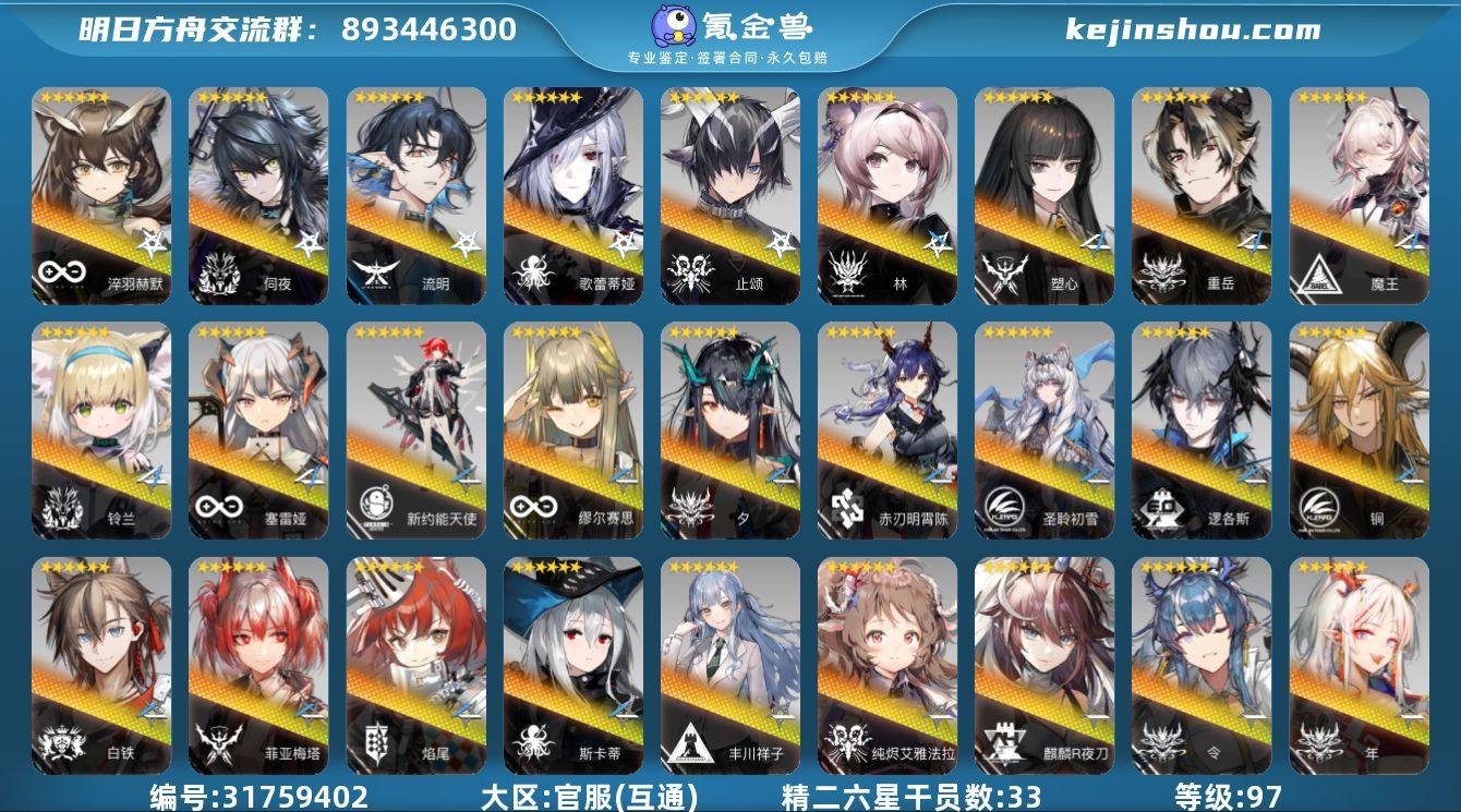 精二六星干员数: 33