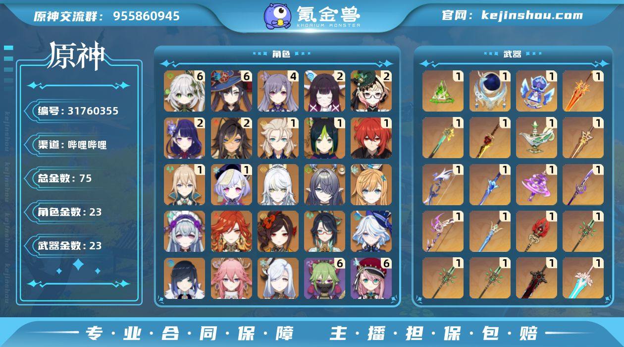 B站未实名,很安全 带43抽 满命草神2命少女 天赋和圣遗物都没有问题 剩下的自己看吧。