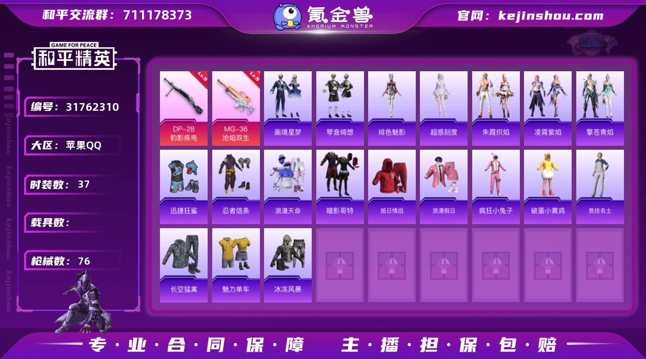 苹果手Q RWM05【6特效枪2粉色飞行器 浪漫天命/暗影哥特/超感刻度/绯色魅影】18584热力值4王牌印记37套装76枪皮 【热门品类】:套装-忍者信条,套装-浪漫天命,套装-暗影哥特 【粉色枪皮等级】:AKS-74U-森灵之息(五级),DP-28-豹影疾电(五级),MG-36-沧焰双生(五级) 【粉色枪皮】:ACE32-萌骑漫游,UMP45-萌骑冒险,AKS-74U-森灵之息,Mk14-福马献瑞,DP-28-豹影疾电,MG-36-沧焰双生 【粉色飞行器】:炫彩糖果飞行器,灵珠游龙飞行器 【粉色降落伞
