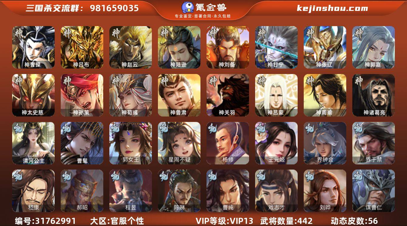 官方一等大将军 92史诗宝珠动皮刘焉 动皮神郭嘉 动皮神荀彧动皮神甘宁 动皮十常侍 回廊孙寒华 动皮文鸯 曹髦 动皮谋黄忠 动皮陆郁生 谋黄盖 动皮谋孙策 留赞 典藏谋貂蝉 界沮授 老仙 杨彪 动皮神曹操 神孙策 神鲁肃 神太史慈