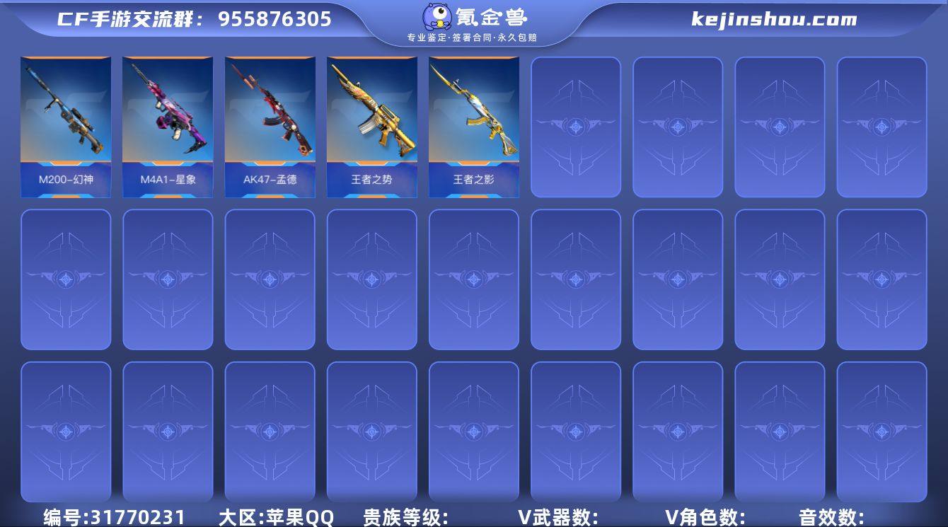 【FC-rvrN8P】苹果QQ,角色等级:153,实名:有修改人脸机会/实名是本人,段位:枪皇SS,VIP等级:V8,V武器数量:294,V角色数量:4,V总数量:270,王者武器数:19,万化数量:458, 【人物角色】关小雨,潘多拉,斯沃特,蔡文昭, 【王者武器】王者之兽,M12S-雷霆王者,雷霆王者之锋,M4A1-雷霆王者,王者之势闪光弹,王者之影闪光弹,王者之影烟雾弹,王者之圣烟雾弹,王者之势烟雾弹,王者之翼烟雾弹,闪光弹-雷霆王者,烟雾弹-雷霆王者,高爆手雷-雷霆王者,王者之心,王者之影,王者之魂,王者之击,王者幻神,王者之狱, 【至尊套装】霆至尊,M4A1-雷霆王者至尊,M12S-雷霆王者至尊, 【带V枪械】MK47-云舞-千变,AK47-黑武士觉醒-金属蜂巢,M4A1-海骑士,M4A1-七色宝葫,M4A1-黑龙钰-子涵,AK47-孟德-过载,M4A1-星象,沙鹰-修罗-不屈老兵,M4A1-游骑兵,M4A1-死神,M4A1-黑龙,M4A1-黑骑士,M4A1-雷神,MK47-云舞,AK47-波塞冬,AK47-雷麒麟,AK47-燎天净火,AK47-孟德,AK47-奉先,COP 357-堕天神,AK47-黑武士觉醒,M4A1-游骑兵-紫魇,M4A1-黑龙-苏城钰,AK47-无影,81式-光明之神,AN94-超新星,HK416-混世行者,98K-黑骑士,AK12-天启,M200-幻神,巴雷特-安琪拉,巴雷特-极光,MR1-龙吟惊沧海,AWM-裁决,AWM-游骑兵,AWM-天龙,刘易斯-血月,MG36-黑骑士,CZS2-心动次元,巴雷特-毁灭-寒霜,M12S-雷霆,斯泰尔-蝴蝶,QCW05-未来战士,双持斯泰尔-天使,巴雷特-极光-尼尔,KSG-黑骑士,贝雷塔-力拔山河,亡命之徒-幻兽,蟒蛇-火力竞放觉醒,沙鹰-波塞冬,沙鹰-冰锋觉醒,沙鹰-明目达聪,沙鹰-孟德,沙鹰-修罗,MK23-幻神,MK23-机械纪元,USP-神罚,COP 357-雷霆,QSZ92-天使,QSZ92-金色蔷薇,双持柯尔特-极光,81式-光明之神-千变,