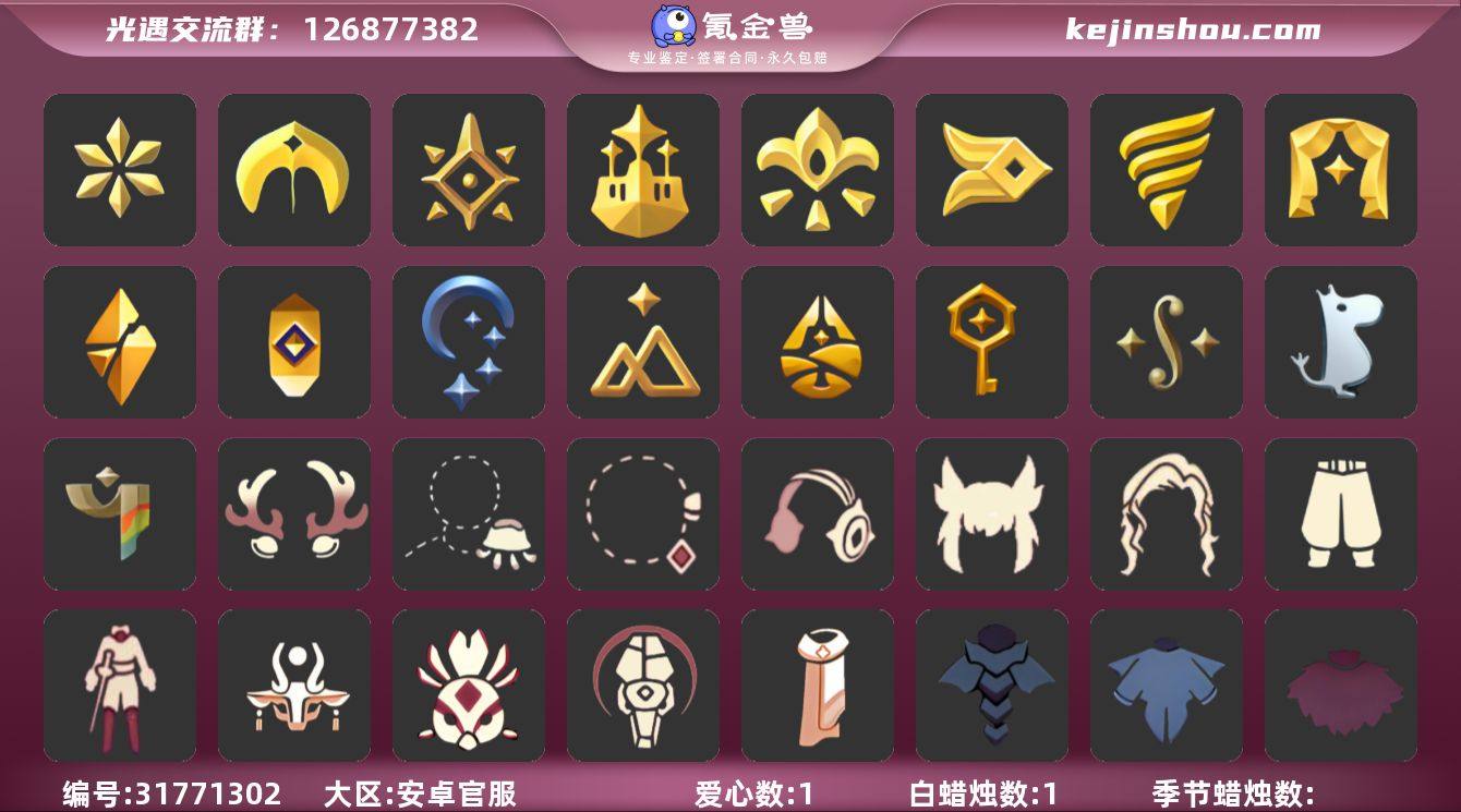 安卓官服22季白鸟阿努比斯超多礼包【JLGY2360】 【毕业图】晨岛,云野,雨林,霞谷,暮土,禁阁 【毕业季】音韵季,圣岛季,预言季,梦想季,集结季,王子季,风行季,潜海季,表演季,破晓季,欧若拉,追忆季,夜行季,拾光季,归巢季,九色鹿,筑巢季,二重奏季,姆明季,彩染季,青鸟季 新季节正常 【稀有礼包】音韵吉他,彩虹武士裤,粽子发饰,星月头冠,金鳞耳饰,彩虹耳钉,彩虹耳机,鹿角,大蝴蝶结,水母肩饰,冥龙套装礼包,贝壳发饰,蓝色音乐符,雪花发夹,兔子发饰,大橘大利,鲤鱼头饰,小狗周年头饰,四叶草头饰,小黄鸭发饰,鲤跃斗篷,蝙蝠斗篷,白雪斗篷,绊爱斗篷,欧若拉之声,情人秋千,小憩茶桌,冥龙南瓜,周年庆抱枕 【毕业物品】白鸟发型,颊纹三角面具,毕业手碟,鳐鲲斗篷,手拍大鼓,阿努比斯,凤凰面具,凤凰斗篷,队长面具,双耳锅帽子,小号,斜边队长斗篷,小王子发型,小王子套装,玫瑰花,多羽发饰,羽袖长袍,潜水面具,单边小辫,暗红斗篷,白枭,黄眉企鹅面具,燕尾斗篷,双翼遥鲲斗,冥龙斗篷,留辫蘑菇头,高领舞服,透明蝶翼斗,肩带,追忆之书,棕熊面具,绒毛斗篷,西部帽,粗框眼镜,季卡相机,五塑彩带斗,五塑彩羽发,飘带斗篷,柔缎花边连,飞天盘发,光之子试衣,设计师长袍,二重奏三角,蓝色燕尾斗篷,二重奏海报,姆明抱枕,姆明红伞,妮妮长裙,辉光羚羊面具,彩染围巾斗篷,青鸟面饰,青鸟斗篷 【热门复刻】绿芽,海洋斗,武士裤,击剑裤,正太头,猫耳发型,虚荣 身高1.62-13.62 当前1.62 资源1/132
