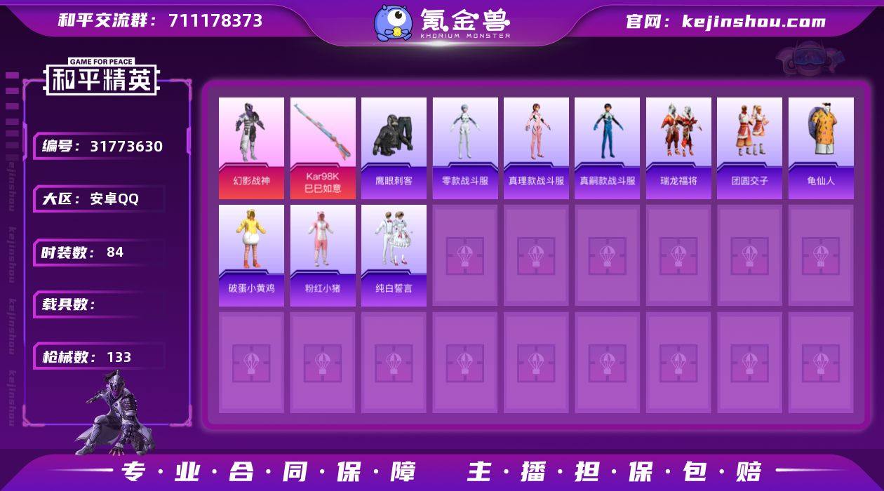 HM6591安卓Q区-1粉装-3特效枪 零款战斗服 真理款战斗服 真嗣款战斗服-38266热力值-9王牌印记-108套装-133枪皮【优质套装】: 幻影战神【特效枪等级】:Kar98K-巳巳如意(五级- Kar98K-巳巳如意)【优质武器皮肤】: Kar98K-巳巳如意【稀有武器皮肤】: DBS-乌木金纹 SLR-墨龙九天 SCAR-L-海盐豹豹 平底锅-精灵梦叶罗丽 GROZA-海盐豹豹 Kar98K-巳巳如意 Mk14-冰河战士 UZI-冰河战士 20-H-乌木金纹 蜜獾-乌木金纹 PKM-啾咪啾咪 M416-红色方程式 M416-蓝色火焰 M416-糯团青竹 AKM-彩虹符号 AKM-破晓战魂 AKM-龙的传人 AKM-虎虎生威 AKM-霓虹街区 SCAR-L-红色方程式 SCAR-L-玉兔迎春 SCAR-L-黄金龙骨 M16A4-红色方程式 GROZA-田园牧歌 AUG-耀粉歌者 AUG-天降萌叽 QBZ-洛神天依 QBZ-彩虹符号 M762-瑞龙福将 M762-诡娃娃 M762-彩虹符号 M762-天降萌叽 Mk47-乌木金纹 Mk47-洛神天依 G36C-乌木金纹 G36C-暗夜玫瑰 AC-VAL-天降萌叽 蜜獾-天降萌叽 蜜獾-娇憨猪猪 Kar98K-王子的夏天 Kar98K-洛神天依 M24-乌木金纹 AWM-天降萌叽 Win94-瑞龙福将 莫辛纳甘-乌木金纹 VSS-田园牧歌 Mini14-耀粉歌者 Mk14-乌木金纹 SLR-彩虹符号 SLR-娇憨猪猪 UZI-炫彩节奏 UZI-红色方程式 UZI-娇憨猪猪 UZI-天降萌叽 UMP45-蓝色火焰 UMP45-诡娃娃 Vector-生命誓言 Vector-田园牧歌 汤姆逊-耀粉歌者 汤姆逊-炫彩节奏 野牛-乌木金纹 MP5K-乌木金纹 S686-彩虹符号 S686-冰封烈焰 S686-红色方程式 S686-生命誓言 S1897-炫彩节奏 S12K-破晓战魂 S12K-玩趣呆呆 S12K-幻世战舞者 S12K-幻影战神 S12K-瑞龙福将 S12K-娇憨猪猪 S12K-垂柳戏鸭 SP