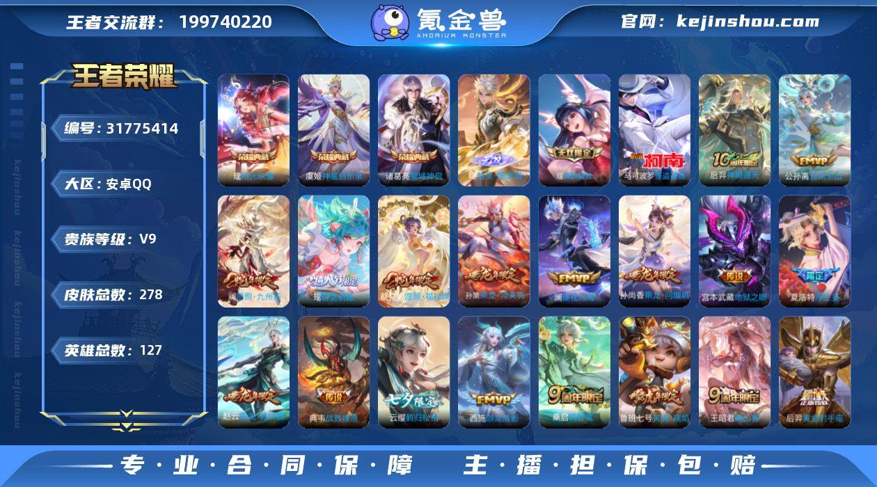 【英雄全皮】:空空儿全皮,影全皮 【荣耀典藏】:诸葛亮星域神启,虞姬神鉴启示录,瑶拾光映像 【无双皮肤】:瑶真我赫兹,曜器灵螭龙剑 【珍品传说】:马可波罗怪盗基德 【传说皮肤】:后羿神树通天,公孙离云诺千山,澜愿照九州拓,蔡文姬愿照福禄聚,王昭君映山客,桑启鸣野蒿,典韦战鼓燎原,孙尚香乘龙问璇玑,孙策乘龙淬吴钩,赵云乘龙铭钟鼎,澜逐花归海,云缨鹤归松栖,马可波罗妄想实况,夏洛特浮生妄,王昭君星穹之声,百里守约碎云,瑶时之祈愿,鲁班七号寅虎瑞焰,西施游龙清影,小乔音你心动,李元芳飞鸢探春,虞姬启明星使,刘备时之恋人,貂蝉猫影幻舞,花木兰冠军飞将,后羿黄金射手座,宫本武藏地狱之眼