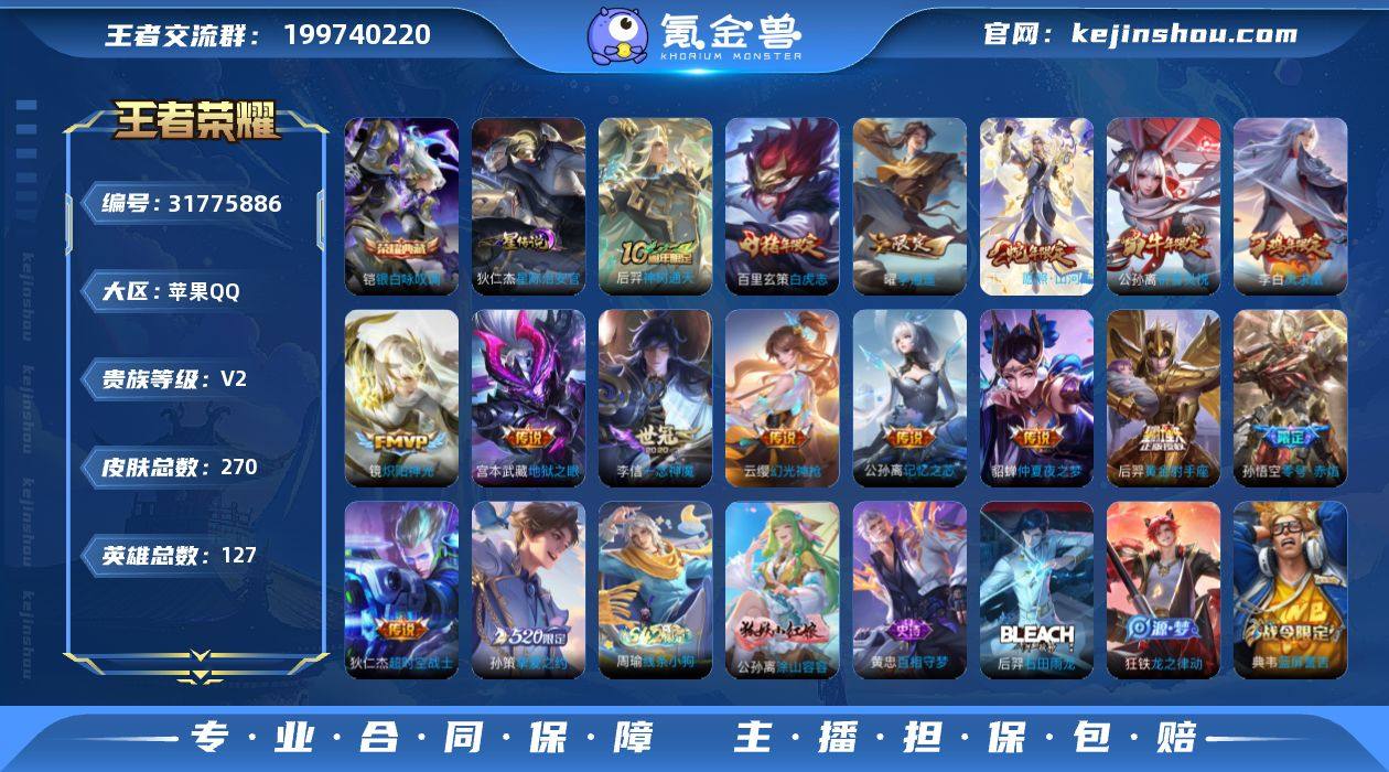 凯荣耀典藏 韩信历史万战金标 镜历史金标 赵云嘻哈天王 李白凤求凰 百里玄策白虎志 孙悟空零号赤焰 孙行者 大圣娶亲 暃埋骨钱 孙策挚爱之约 曜李逍遥 公孙离祈雪灵祝 镜炽阳神光 李信一念神魔 马超神威 裴擒虎李小龙 韩信飞衡 露娜一生所爱
