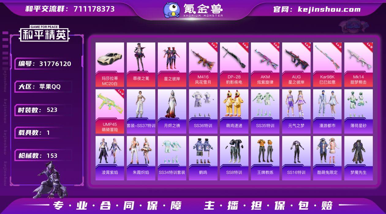 和平精英 苹果QQ区,可二次实名,无违规记录 • 特效枪:M416风花雪月(7级)、AKM炫紫旋律(5级)、AUG星之彼岸(5级) • 载具:玛莎拉蒂MC20(星石白) • 粉装:星之彼岸套装、罪夜之冕角色 卓越收藏家53级,历史总热力值48089,支持官方验号,永久包赔,诚心出,可小刀