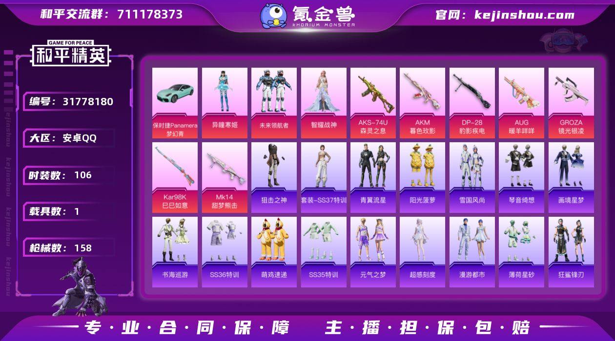 【1载具 7特效枪 3粉装 158枪皮 106套装】保时捷Panamera(梦幻青) 地铁号满天赋 菠萝 暗影哥特 螳螂 18本体,编号:ZPWXW41