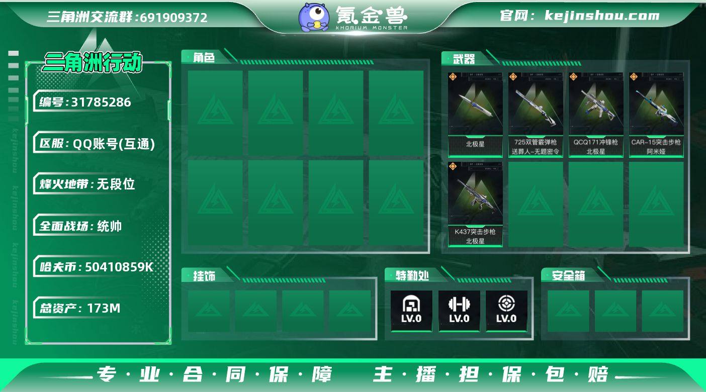 【10486278】[10486278]WBDS0013 三段互通 段位黑鹰 行动等级60 资产173.6M 哈佛币50410K 仓库LV9 指挥中心Lv.6 训练中心Lv.7 CAR-15突击步枪-阿米娅 SR-25射手步枪-水墨云图 K437突击步枪-北极星 复合弓-黑-天际线 QCQ171冲锋检-北极星 三角洲账号 【哈夫币物品官方控价存在上下浮动,以游戏内截图为准,介意勿拍】