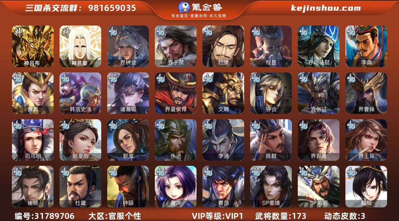 8史诗中军,双天工闫象,孟达,冠绝天下动态神吕布,界钟会,沙摩柯,花鬘,界于禁,嵇康,左慈,程昱8史诗,神吕蒙,动态界大乔,谋高顺,谋韩当,崔琰,界曹植,甘夫人,吴班,张布,诸葛恪,濮阳兴,界孙鲁班,贾充,界刘表173将,国战63将,4.9万豆,5级活树