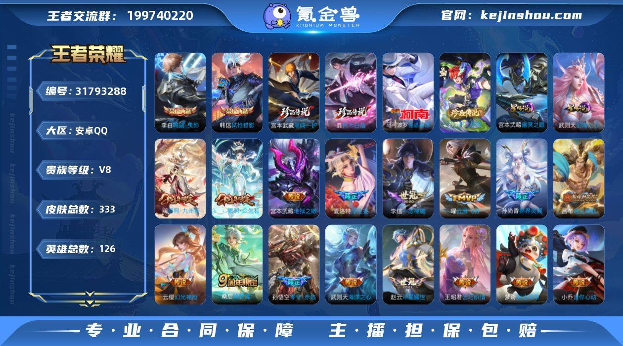 P1325-安卓Q区407-不可二次-贵8-126英雄-333皮肤-2典藏-4珍品传说-19传说-95限定-86史诗-2星传说-18按键-1天幕-弑枪猎影/鸣剑·曳影/黑崎一护/朽木白哉/时之奇旅/怪盗基德/地狱之眼/海洋之心/黄金白羊座/云鹰飞将/浮生妄/异界灵契/淬星耀世/愿照·众生和/愿照·九州拓/幻光神枪/至尊宝/东方月初