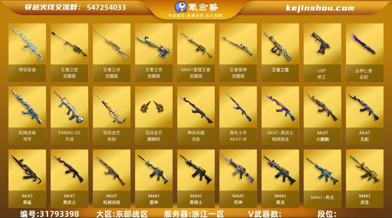 Y193356 (3传说+传说星骇四防+传说圣谕+传说暗裔+usp冥王+幻神三件套+电玩白虎+星神+裁决三件套+火麒麟三件套+毁灭三件套+雷神三件套+极光三件套+黑骑士三件套)cf东部/浙江一区/96V/传说星骇(四防)/传说圣谕/传说暗裔/usp冥王/幻神+周瑜+幻神音效卡/白虎电玩蓝兔/王者星神/裁决+运输船+音效卡/火麒麟+cfs2018+音效卡/雷神+荣耀之魄+音效卡/毁灭+cfs2020+音效卡/黑骑士+摸金校尉+音效卡/极光+能量核心+音效卡/qbz金色蔷薇/王者葵貂蝉+王者涂鸦/8音效卡/多皮可排/信用分316