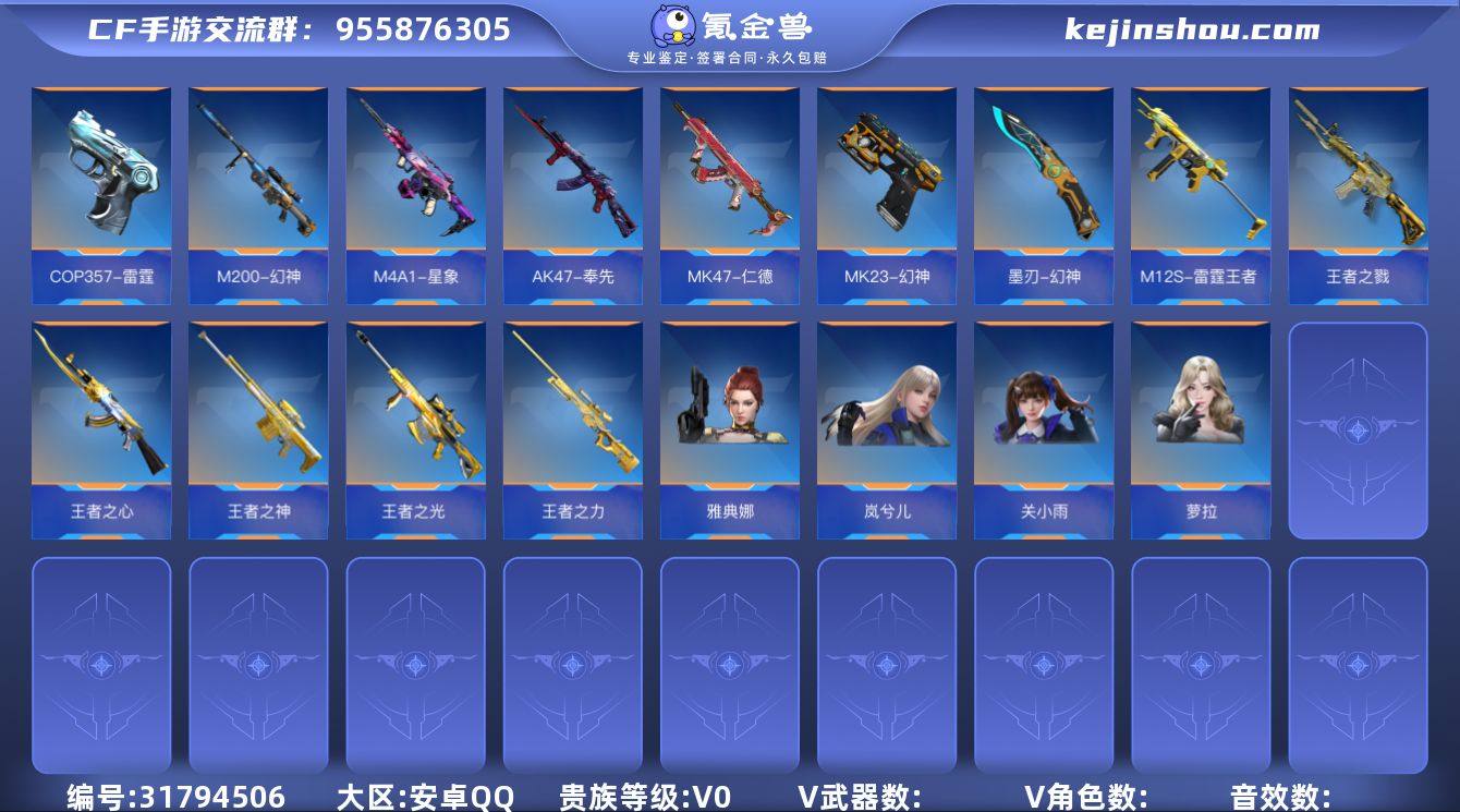 !安卓QQ-贵9-可转区-钱包注销-可二次-254V不重复-51角色-460万化-47王者武器-王者之力-COP雷霆-5至尊-3同框-常胜-奉先-星象-仁德-幻神套-光至尊-心至尊-魄至尊-怒至尊-烈至尊-王者之魄-燃竞之巅-拉丝-王者之心-拉丝-王者之怒-燃竞之巅-拉丝-王者之光-拉丝-王者之神-王者之戮-冰霜奇迹-王者之狱-冰霜奇迹-王者之烈-M12雷霆王者--王者之影-王者之兽-王者之誉-王者之霆-王者之魂-燃竞之巅-拉丝-白金血钻-王者之轮-拉丝-王者之灵-王者之隐-王者之技-王者之锋-燃竞之巅-拉丝-王者之击-拉丝-王者之啸-王者之心手雷套-燃竞之巅-拉丝-王者之翼手雷套-拉丝-王者之竞手雷套-雷霆王者手雷套-王者之影闪光弹-拉丝-王者之影烟雾弹-【角色】-岚兮儿-雅典娜-萝拉-关小雨-葵-审判者-晴雅-炽天使X-职场灵狐赛事经理-火麒麟套-黑武士套-黑骑士套-毁灭套-无影套-天使套-火力竞放套-机械迷城套-诗仙套-天神套
