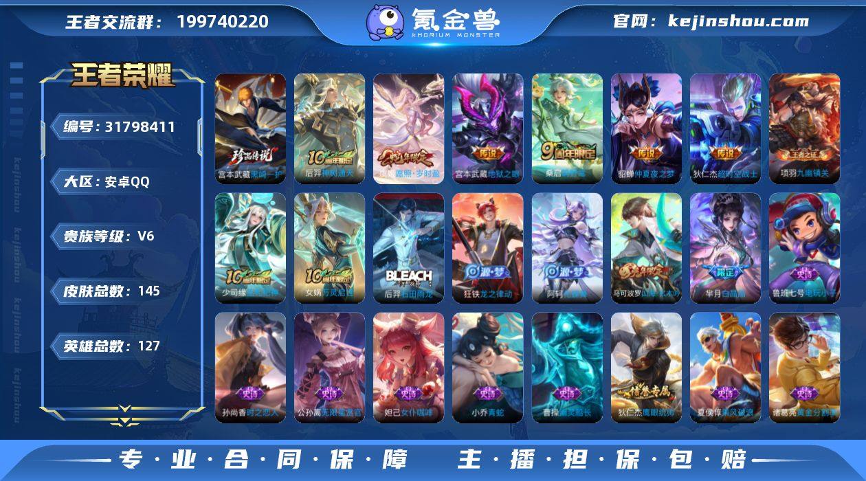 【V6 1珍品 7传说 145皮肤 127英雄】黑崎一护 仲夏夜之梦,地狱之眼,超时空战士(狄仁杰),战鼓燎原,鸣野蒿,愿照·岁时盈,神树通天17-1,编号:ZPZXJ32