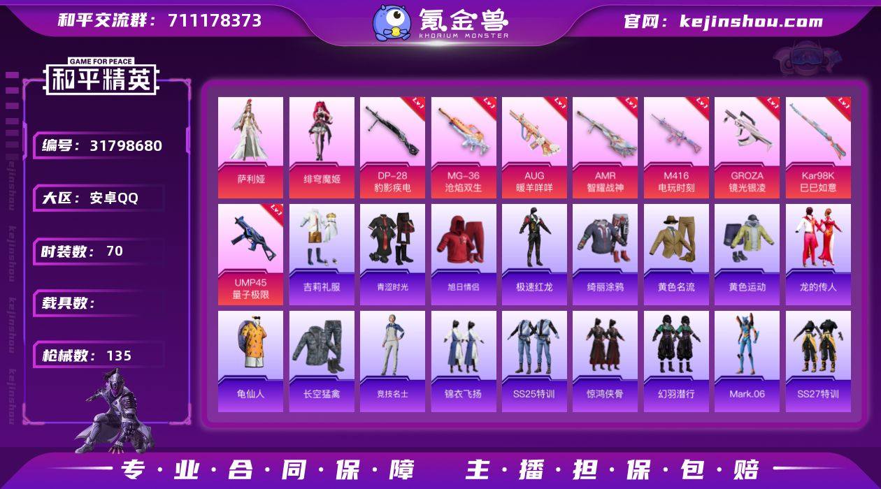 可二次【蓝螳螂2粉装8特效枪可秒换绑】 安卓Q区-39222热力值-8印记-70套装-135枪皮 【1稀有】 Mark.06【2粉装】 角色-绯穹魔姬 角色-萨利娅【8特效枪】 M416-电玩时刻(5级) UMP45-量子极限(5级) AMR-智耀战神(5级) GROZA-镜光银凌(5级) Kar98K-巳巳如意(5级) DP-28-豹影疾电(5级) AUG-暖羊咩咩(5级) MG-36-沧焰双生(5级)【11热门】 长空猛禽 S686-奇异狩猎者 极速红龙 冰公主 SS27特训 SS25特训 Mark.06 AKM-缤纷海域 UMP45-蓝色火焰 UMP45-炫光之旅 M249-彩虹符号【1飞行器】 黄色滑翔尾迹 营地ID:972856613