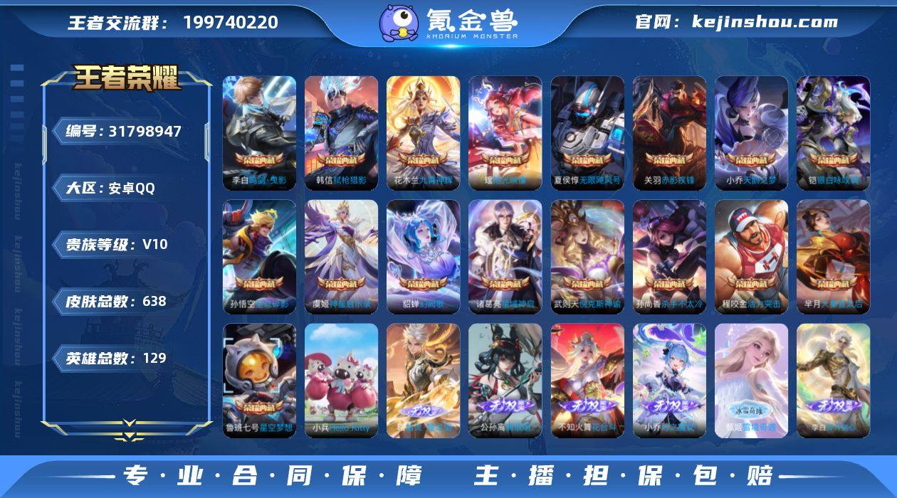 贵族10 荣耀典藏19 无双10 珍品传说4 传说皮肤115 史诗皮肤217 皮肤数量638,1小兵皮,4天幕