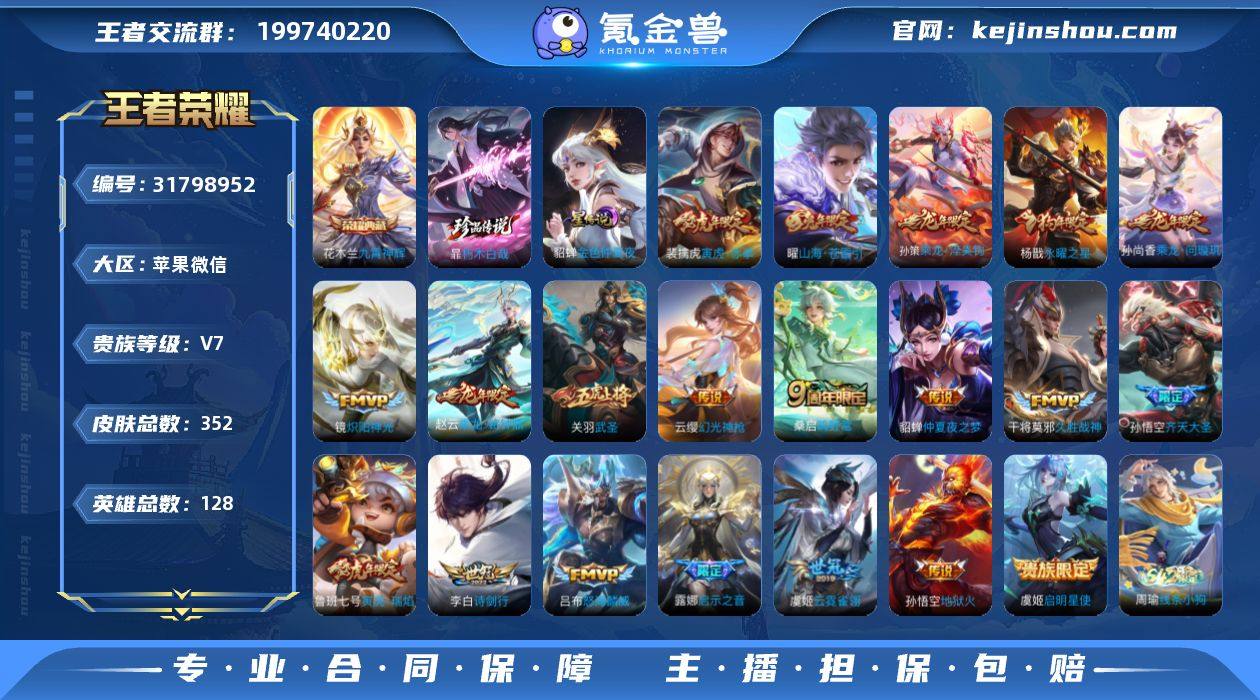 1.2w金标木兰 1.1w貂蝉 带无双贵族传承 650个皮肤可用