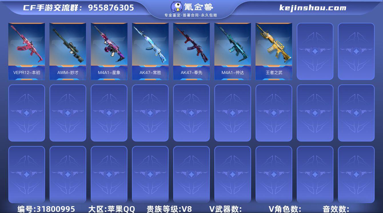 x2196 VIP8级,怒至尊,心至尊,火皮王心,王翼,冰皮王影,王圣,王武,王尊,冠军LGD王怒,冰皮王怒,女团王怒,王狱,王烈,火皮王魂,白金王魂,冰皮王啸,冰皮王锋,火皮王锋,女团王锋,王刺,冰皮王击,M4星象,加特林-炼狱-怒魔,女团王心雷,王者之势闪光弹,王者之圣烟雾弹,王者之圣闪光弹,刀锋-枪战王者,萝拉,狙击枪线1消灭音效5;【王者武器】:王者之心,王者之翼,王者之影,王者之圣,王者之武,王者之尊,王者之怒,王者之狱,王者之烈,王者之魂,王者之啸,王者之锋,王者之刺,王者之击,王者之心手雷,王者之势闪光弹,王者之心闪光弹,王者之圣闪光弹,王者之心烟雾弹,王者之圣烟雾弹;【三国武器】:M4A1-星象,加特林-炼狱,GLOCK18-武圣,气手枪-炼狱,方天画戟;【热门武器】:AK47-火麒麟,AK47-沙漠领主,AK47-无影,AK47-樱斗士-二觉,AK47-血武士,M4A1-雷神,M4A1-黑骑士,M4A1-死神,M4A1-玫瑰精灵,AK47-谜城烟火,M4A1-铁胆虎魄,SCAR-幽暗骑士,M4A1-海骑士,SCAR-心动PICK,M4A1-赛博雷神,M4A1-运输船,9A91-天神,剑齿虎,9A91-诛仙四剑,M14EBR-拂影,M14EBR-葫芦山庄,QBZ03-湮灭,AN94-超新星,G36-机械纪元,AK103-湮灭,SBR-湮灭,QBZ03-死神,81式-光明之神,G36-李星云,QBZ03-金色蔷薇,Ash-马上来财,G3A3-衍神兵,FNF2000-十绝阵觉醒,MK47-云舞,AWM-天使,AWM-天龙,巴雷特-毁灭,巴雷特-极光,暗杀神,M200-幻神,98K-黑骑士,M200-心动次元觉醒,98K-星神,M200-竞技荣光,VSK-94-九黎兵主觉醒,RPK-赤炎盘龙,加特林-炼狱,加特林-堡垒,王者之狱,MG36-魔礼青,汤姆逊-烈龙,MK5-机械纪元,王者之烈,斯泰尔-恶魔,地狱火,QCW05-未来战士,双持斯泰尔-天使,AA12-雷神,地狱烈樱·二觉,地狱烈炎,KSG-天使,沙鹰-修罗,沙鹰-飞电,USP-仲康,沙鹰-天...