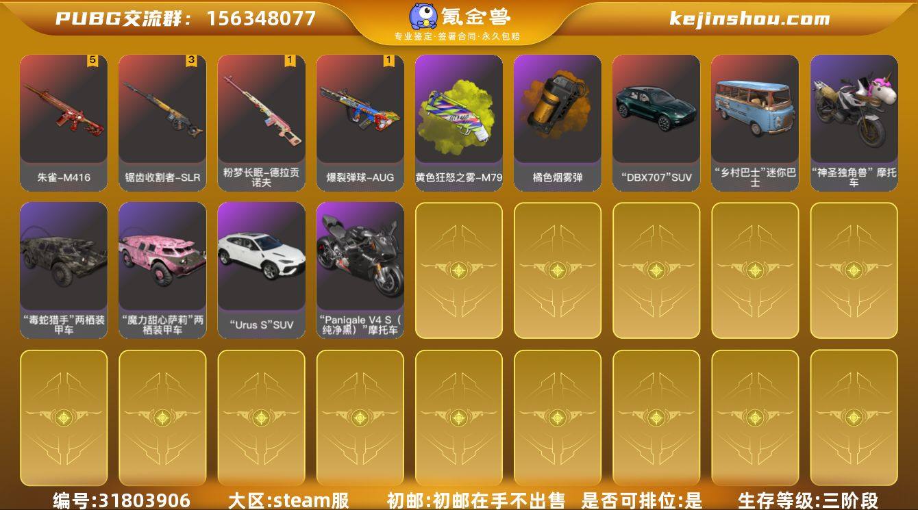 初邮情况:有初邮不出售 是否可排位:是热门载具:阿斯顿马丁跑车,兰博基尼suv,杜卡迪纯净黑 车:"恐龙乐园"达西亚轿车,"碰撞测试"皮卡车,"为你疯 狂"库佩RB,"间谍软件"乌阿斯吉普车,"PCS2战术扭矩"双人越野车,"魔力甜心萨莉"两栖装甲车,"毒蛇猎手"两栖装甲车,"圣诞快乐"乌阿斯吉普车 摩托车:"加塔尔越野赛"越野摩托车 其他载具:"海洋幻想"摩托艇亮点:newjeans全舞蹈女团五级朱雀小丑女阿斯顿马丁兰博基尼杜卡迪粉色蟑螂车珊瑚色烟雾弹 展示大厅