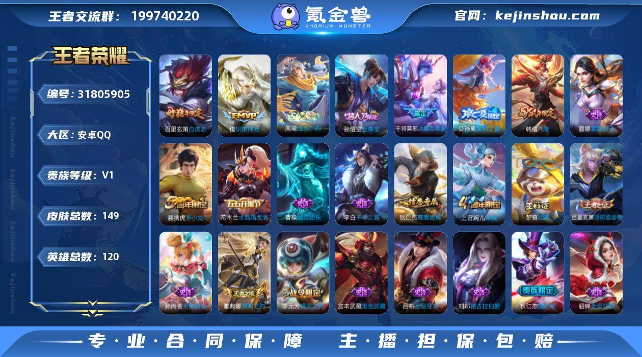 【W5743】可二次-安卓-120英雄-149皮肤-2传说-31史诗-【传说皮肤】:镜炽阳神光,百里玄策白虎志