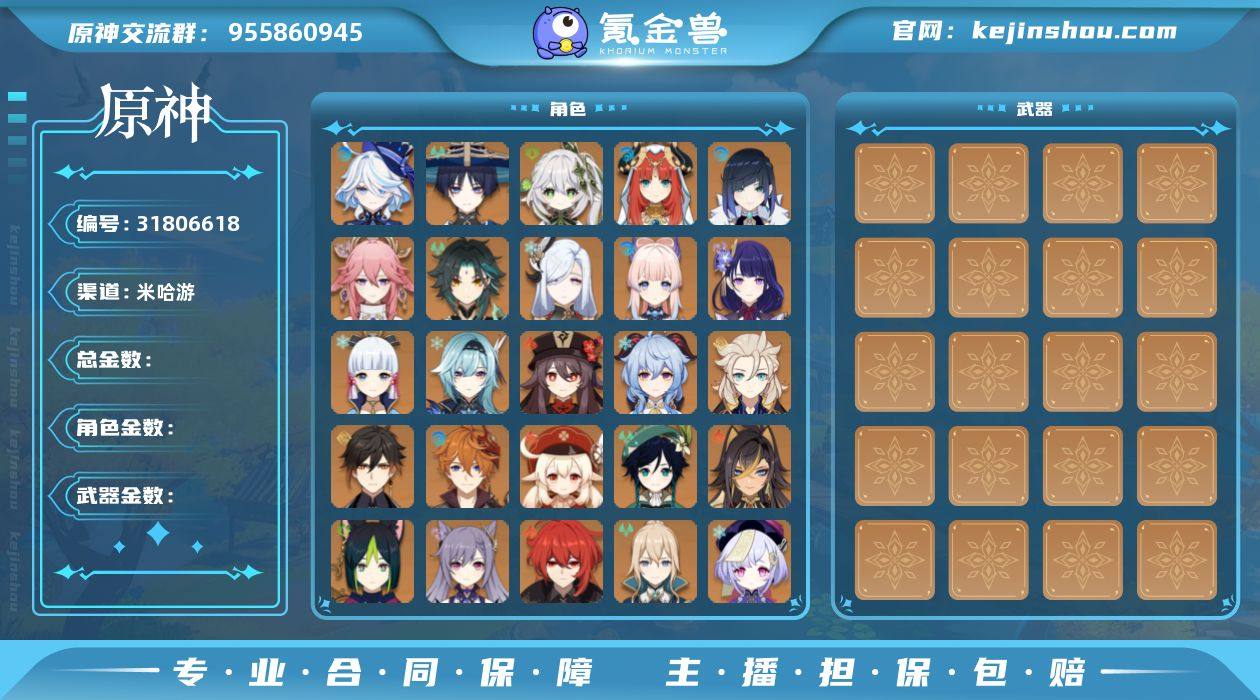 无绑定邮箱 58冒险等级 86金 57金人物 29金武器 满命雷电将军 满命八重神子 1命夜兰 1命胡桃 妮露 甘雨 阿贝多 达达利亚 温迪 钟离 优菈 神里绫人 芙宁娜 可莉 枫原万叶 珊瑚宫心海 纳西妲 神里绫华 魈 申鹤 4命迪卢克 4命七七 3命刻晴 1命莫娜 1命琴 1命提纳里 1命迪希雅 流浪者 4阶风鹰剑 3阶和璞鸢 2阶阿莫斯之弓 2阶千夜浮梦 神乐之真意 薙草之稻光 护摩之杖 雾切之回光 若水 天空之翼 狼的末路 天空之傲 波乱月白经津 不灭月华 息灾 天空之脊 天空之刃 冬极白星 天空之卷 N7914 原神买号永久包赔