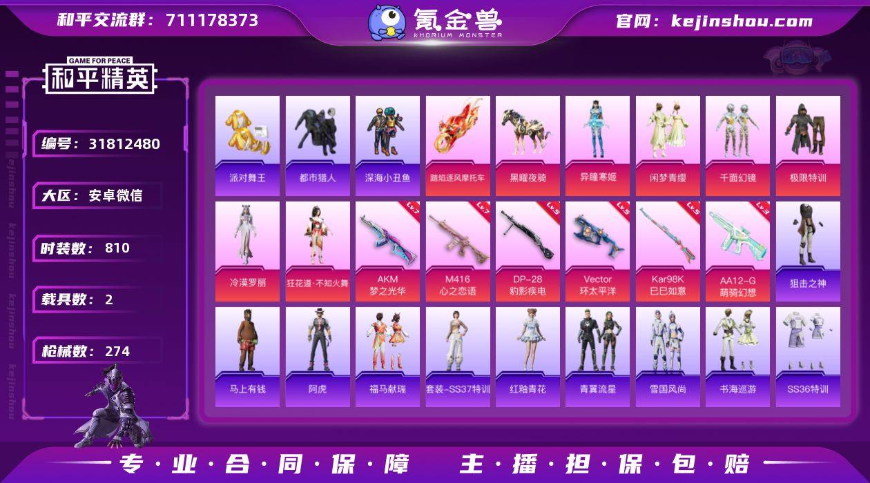 实名:不可二次实名 是否支持人脸包赔:支持 粉装数量:6 特效枪数量:6 载具数:2 时装数:810 枪械数:274 都市猎人,派对舞王,深海小丑鱼 异瞳寒姬,极限特训,狂花道·不知火舞,冷漠罗丽,千面幻镜,闲梦青缨 七级AKM-梦之光华,七级M416-心之恋语,五级DP-28-豹影疾电,五级Kar98K-巳巳如意,五级Vector-环太平洋,三级AA12-G-萌骑幻想 踏焰逐风摩托车,黑曜夜骑 狙击之神,阿虎,马上有钱,福马献瑞,红釉青花,SS37特训,雨过天青,青翼流星,雪国风尚,画境星梦,琴音绮想,书海巡游,SS36特训,炫彩糖果,粉黛兰香,绯色魅影,萌鸡速递,紫俏灵猫,风迹短诗,秘语星愿,SS35特训,午间小调,超感刻度,甜心蒙太奇,元气之梦,喜羊羊,薄荷星砂,云魄琉璃,狂鲨锋刃,凌霄紫焰,擎苍青焰,SS34特训套装,游乐,朱霞炽焰,Alan Walker,暗影哥特,冰冻风暴,缤纷果语,冰公主,滨海假日,冰河战士,白糯汤圆,白色伏地魔,贝斯之夜,白熊同盟,春光漫游,彩虹兔,雏菊兔兔,长空猛禽,潮流炫酷,超能勇士,春日漫步,顶瓜瓜,蝶变,大橘大利,多纳泰罗,都市丽猫,都市猎人,都市魅力,蝶吟花词,恶魔宝贝,绯格组合,粉恋花,飞行日记,光矢逐梦,龟仙人,光之冒险,华灯初上,海岛探路者,鹤鸣,湖蓝色名流,活力之心,黑色伏地魔,黄色伏地魔,黄色名流,黄色运动,红色运动,幻世战舞者,和煦暖阳,幻羽潜行,幻影武者,军刀雅典娜,酒红色名流,惊鸿侠骨,橘黑制服,娇憨猪猪,竞技达人朋克,竞技名士,坚韧舞者,极速光影,极速红龙,街头潮人,街头风暴,锦衣飞扬,空岛之星,快闪甜心,空投萌叽,蓝冰羽,蓝彩潮人,龙的传人,灵公主,龙魂突击队,猎鹰,萝兰蝴蝶,黎明保卫者,浪漫天命,蓝色运动,龙腾端午,莱茵河畔,恋语绒绒,冷焰舞者,漫步者,猛禽,梦幻奶油,棉花软糖,萌黄之夏,魅力单车,麻辣教官,萌趣咩咩,明鸳圣池,梦魇先生,霓虹街区,柠萌假日,牛气冲天,牛气满满,派对舞王,破蛋小黄鸡,破晓战魂,轻风白浪,绮丽涂鸦,青年教官,青涩时光,青团波波,青玉碎影,云朵鹅,荣耀,人气偶像,深海小丑鱼,深蓝色名流,沙漠兵团,SS17特训,SS18特训,SS19特训,SS20特训,SS21特训,SS22特训,SS23特训,SS24特训,SS25特训,SS26特训,SS27特训,SS28特训,SS29特训,SS30特训套装,SS31特训套装,SS32特训套装,SS33特训套装,巳巳如意,时希公主,探宝勇士,甜蜜熊情侣,糖糖葫芦,特训学院,田园牧歌,特战装甲,完美偶像,王牌教练,顽皮玉兔,小丑鱼,星河浪客,迅捷狂鲨,小鸟芋圆,雪绒豹,旭日情侣,夏日音浪,血色贵族,雪山精英,香桃花海,星途旅人,小熊娃娃,耀粉歌者,阳光火鸡,雨林探路者,元气发射,玉兔迎春,乐音,野性山猫,英勇保护者,鹰眼刺客,焰鹰斗篷,鱼渊荷华,幽夜迷踪,耀眼新星,燕燕于飞,异域银装,战地督导,智谋强哥,紫幽梦,灼焰舞者 绝对恒星飞行器,炫彩糖果飞行器,绝对恒星降落伞,炫彩糖果降落伞,异瞳寒姬降落伞,喜羊羊与灰太狼降落伞,无垠阁降落伞,彩虹甜喵降落伞,动力核心降落伞,繁龙极客降落伞,环太平洋降落伞,临安公主降落伞,冷漠罗丽降落伞,翩跹演武降落伞,千金淑猫降落伞,千面幻镜降落伞,圣堂之誓降落伞,未来战士降落伞,炫光之旅降落伞,旋转彩虹降落伞,音爆索尼克降落伞,月影灵韵降落伞,猪猪侠降落伞 卖家说:生活中出了点事,只能卖号了,已经调成最低价, 不可以刀了, 号上1000点券,一年特权卡, 心悦俱乐部半 个月到期, 地铁30000