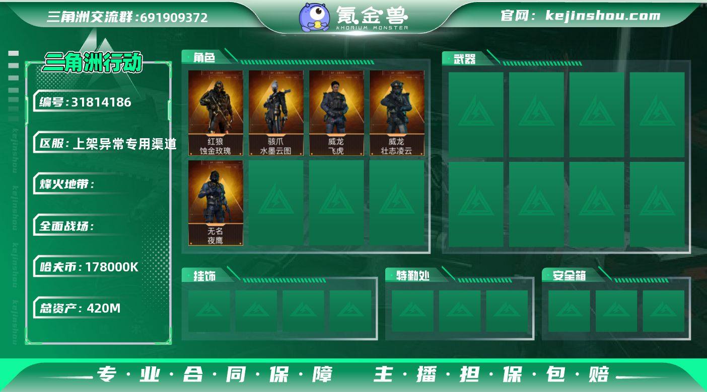 实名:不可二次实名 总资产:420M 哈夫币:178000K