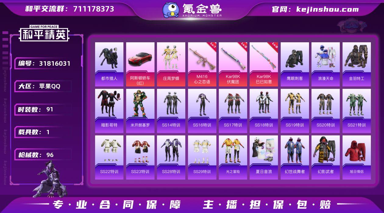 苹果 【男神号 浪漫天命/都市猎人/暗影哥特/M416-心之恋语(七级)/阿斯顿马丁DBS(红)】手Q-1粉装-5特效枪-1载具-0粉色飞行器-32266热力值-6王牌印记-91套装-96枪皮 【热门品类】:套装-浪漫天命,套装-都市猎人,套装-金羽特工,套装-暗影哥特 【粉色套装】:粉装-庄周梦蝶 【粉色枪皮等级】:M416-心之恋语(七级),Kar98K-伏魔团(五级),Kar98K-巳巳如意(五级) 【粉色载具】:阿斯顿马丁DBS(红) 【粉色枪皮】:M416-心之恋语,Kar98K-伏魔团,Kar98K-巳巳如意,Mk14-福马献瑞 【粉色降落伞】:星穹咏叹调降落伞,炫彩糖果降落伞 【稀有套装】:套装-雪国风尚,角色-米开朗基罗,套装-雨过天青,套装-红釉青花 【稀有枪皮】:AKM-彩虹符号,AKM-生命誓言,AKM-破晓战魂,AKM-虎虎生威,AKM-霓虹街区,M16A4-幻世战舞者,SCAR-L-玉兔迎春,SCAR-L-红色方程式,M416-糯团青竹,M416-红色方程式,M416-蓝色火焰,GROZA-影袭,AUG-天降萌叽,AUG-耀粉歌者,QBZ-彩虹符号,QBZ-洛神天依,QBZ-飞驰魅影,M762-天降萌叽,M762-瑞龙福将,Mk47-洛神天依,AC-VAL-天降萌叽,蜜獾-天降萌叽,UZI-啾咪啾咪,UZI-影袭,UMP45-蓝色火焰,Vector-生命誓言,汤姆逊-天降萌叽,汤姆逊-炫彩节奏,汤姆逊-樱桃泡泡,P90-飞驰魅影,Kar98K-彩虹符号,Kar98K-影袭,Kar98K-炫彩节奏,Kar98K-飞驰魅影,M24-影袭,Win94-瑞龙福将,S686-生命誓言,S1897-炫彩节奏,S1897-飞驰魅影,S12K-玩趣呆呆,S12K-瑞龙福将,S12K-幻世战舞者,DP-28-彩虹符号,MG3-幻世战舞者,MG3-瑞龙福将,破片手榴弹-巳巳如意 【其他套装】:套装-SS14特训,套装-SS16特训,套装-SS17特训,套装-SS18特训,套装-SS19特训,套装-SS20特训,套装-SS21特训,套装-SS22特训,套装-SS23特训,套装-SS28特训,套装-SS29特训,套装-光之冒险,套装-夏日音浪,套装-...