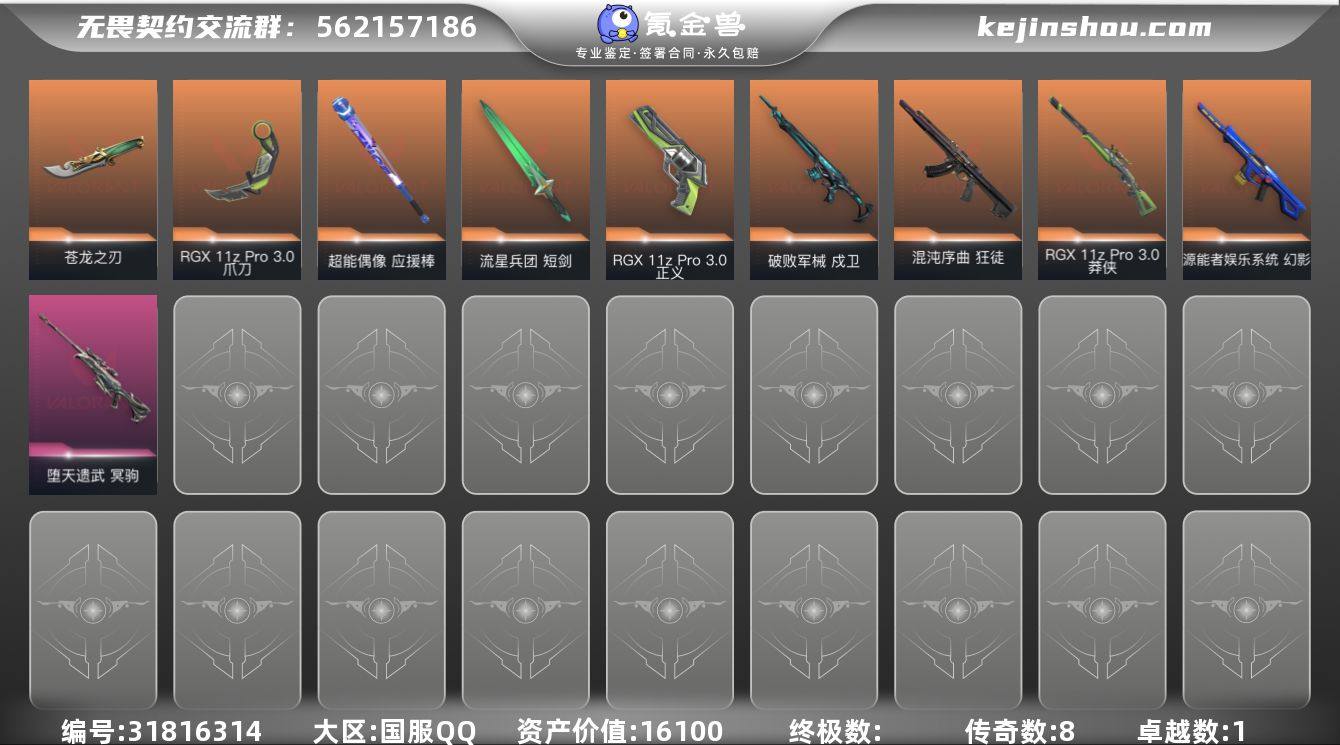 皮肤资产价值: 16100