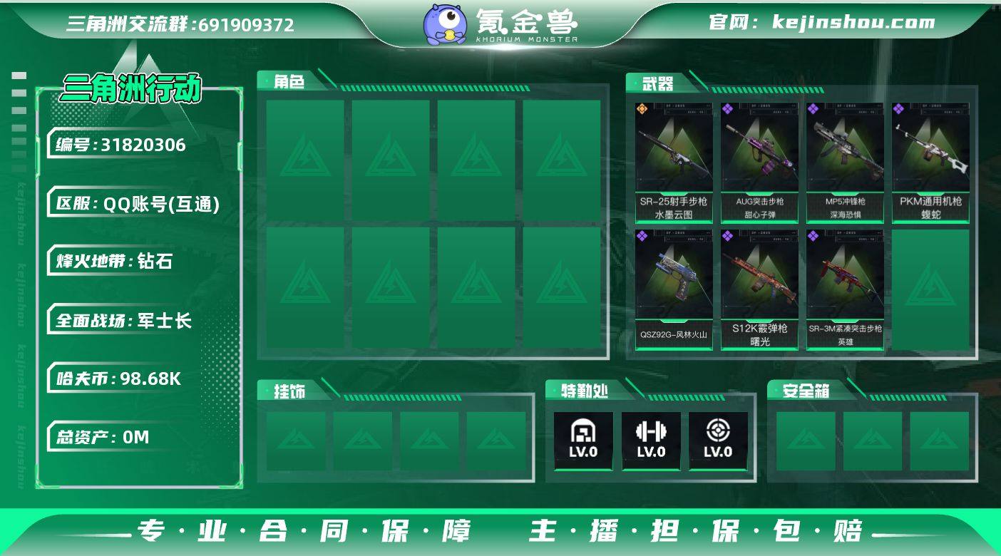85202|【可实名】精品脱坑号 可二次 总资产8.2M 维什戴尔 金牌射手 午夜邮差 处刑者 暗星 低价出QQ区 哈夫币:98683 干员外观数:3 近战数:1 典藏数:7 枪械数:130 载具数:21 烽火地带等级:60 全面战场等级:30 烽火地带段位:钻石 全面战场段位:军士长 特勤处:技术中心Lv.3|工作台Lv.3|制药台Lv.3|防具台Lv.3 捆绑包:捞点薯条捆绑包 干员外观:骇爪-维什戴尔|蛊-能天使·午夜邮差|露娜-金牌射手 近战:黑鹰 枪械:SCAR-H战斗步枪-启航|SG552突击步枪-运动员|勇士冲锋枪-能天使·午夜邮差|Vector冲锋枪-能天使·午夜邮差|SR-25射手步枪-水墨云图|R93狙击步枪-维什戴尔|M250通用机枪-骑士精神|腾龙突击步枪-猎鳄行动|AS Val突击步枪-百步穿杨|G3战斗步枪-流沙送葬|SCAR-H战斗步枪-囚徒|SG552突击步枪-哈夫克警备|M7战斗步枪-百步穿杨|AUG突击步枪-甜心子弹|MP7冲锋枪-守护者|SR-3M紧凑突击步枪-战术竞备|SR-3M紧凑突击步枪-英雄|Vector冲锋枪-百步穿杨|MP5冲锋枪-竞技风|MP5冲锋枪-深海恐惧|AWM狙击步枪-私人定制|AWM狙击步枪-流沙送葬|M700狙击步枪-百步穿杨|M700狙击步枪-哈夫克警备|SV-98狙击步枪-猎鳄行动|QSZ92G-风林火山|M250通用机枪-囚徒|PKM通用机枪-蝮蛇|S12K霰弹枪-曙光|K437突击步枪-生存指令|CAR-15突击步枪-亚特兰蒂斯|G3战斗步枪-主宰|G3战斗步枪-战术演练|SCAR-H战斗步枪-荣耀列队|AK-12突击步枪-零点|M7战斗步枪-捣蛋鬼|K416突击步枪-碳纤维|ASh-12战斗步枪-繁盛|AKS-74U突击步枪-冰天雪地|AKM突击步枪-肃杀|M4A1突击步枪-繁盛|M4A1突击步枪-零点|MP7冲锋枪-幻影结构|勇士冲锋枪-冰天雪地|勇士冲锋枪-主宰|SMG-45冲锋枪-幻影结构|SMG-45冲锋枪-行动开启|SMG-45冲锋枪-哈夫克卫队|Vector冲锋枪-先锋|MP5冲锋枪-哈夫克卫队|MP5冲锋枪-弄臣|M14射手步枪-天际线|PSG-1射手步枪-主宰|SR-25射手步枪-蜂窝科技|SR-25...