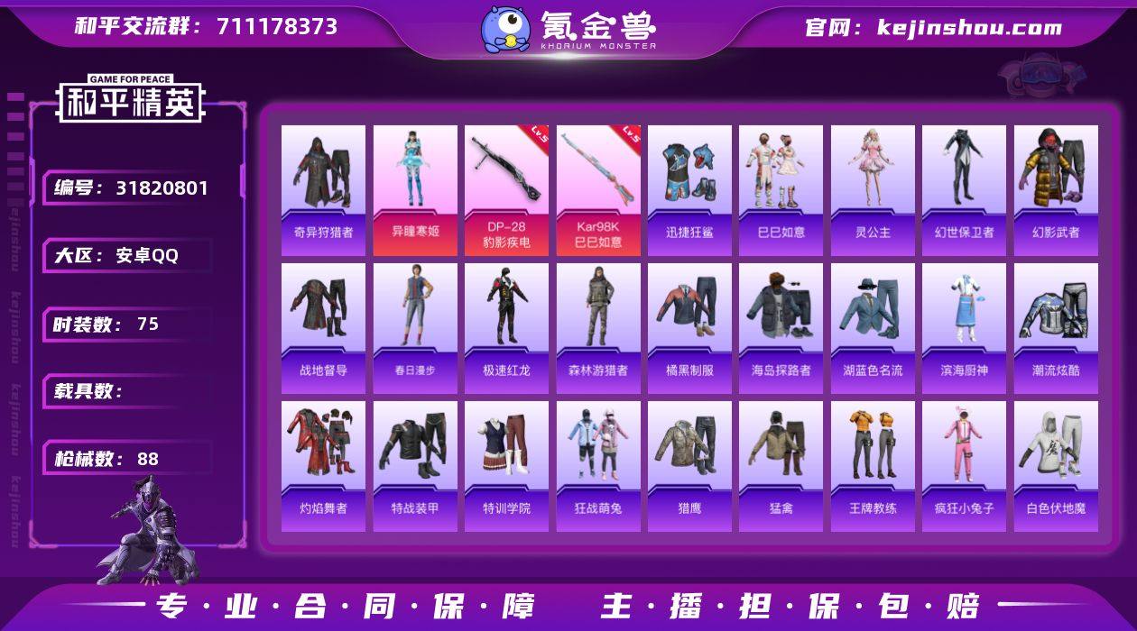 【蜘蛛侠 鲨鱼裤 满地铁天赋】YXc26188-【可二次】【因赛季更新游戏段付以上号为准!】 安卓Q-2稀有1粉装5特效枪3热门75套装88枪皮 2印记 历史超级王牌19星 【2稀有】 奇异狩猎者 AKM-缤纷海域 【1粉装】 异瞳寒姬 【5特效枪】 AKS-74U-森灵之息 (5级) Kar98K-巳巳如意 (5级) DP-28-豹影疾电 (5级) Mk14-福马献瑞 (4级) ACE32-萌骑漫游 (3级) 【3热门】 迅捷狂鲨 极速红龙 S686-奇异狩猎者 【1头盔】 深海小丑鱼头盔 【2背包】 幻影战神背包 深海小丑鱼背包