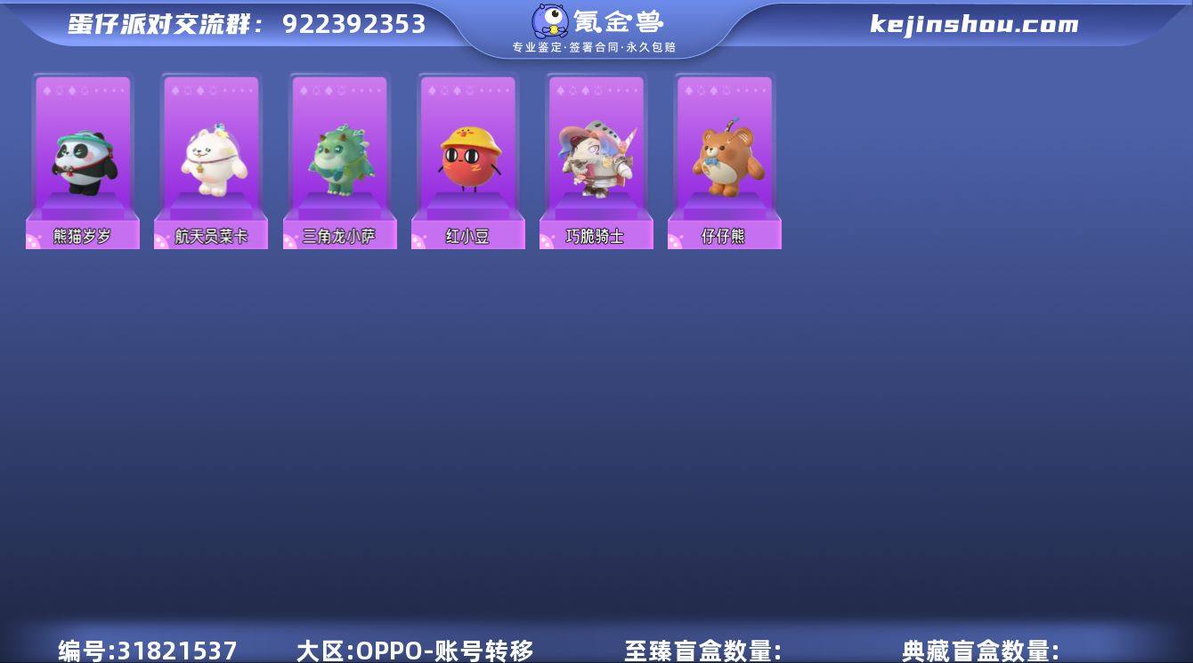 航天员莱卡,红小豆,巧脆骑士,三角龙小萨,熊猫岁岁,仔仔熊 段位:二阶鸽子蛋 卖家说:有红小豆 熊猫