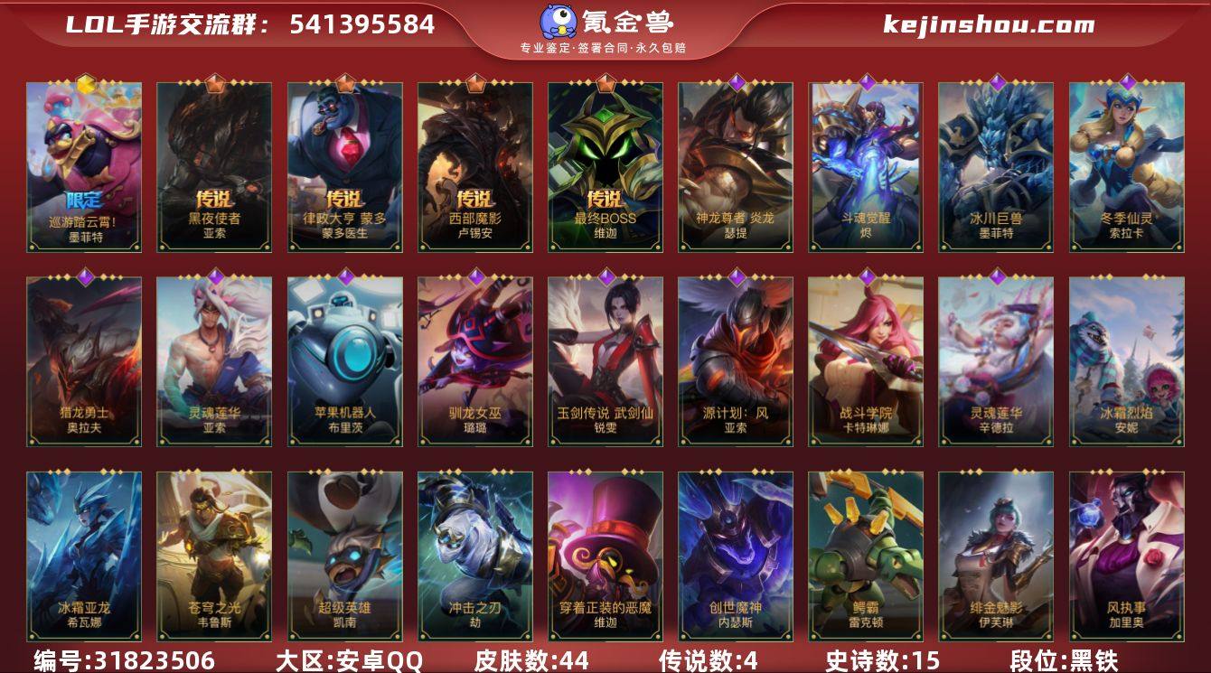 【LSC460】71英雄/44皮肤/1神话/4传说/15史诗/傲世宗师/巡游踏云霄!墨菲特/黑夜使者亚索/西部魔影卢锡安/律政大亨/最终BOSS维迦/蕊雪盈春:晏安 赫卡里姆/斗魂觉醒 烬/灵魂莲华辛德拉/苹果机器人/源计划:风/灵魂莲华亚索/驯龙女巫/神龙尊者 炎龙 瑟提/冰川巨兽石头人/碧空灵跃 阿萝拉/玉剑传说 武剑仙/战斗学院卡特/冬季仙灵/猎龙勇士奥拉夫/欧米伽小队 天雷爆破手 维迦/s4光耀之心/s5绯金魅影/s16冠翎飞行员/S18冠翎巨神像/S19冠翎征服者/游侠法师/光耀之心发条/国王/兄弟已百暴! 泰达米尔/冠翎征服者 尼菈/绯金魅影(可升级)/冰霜烈焰/西部牛仔亚索/焰尾妖狐/冲击之刃劫/声威黠影 提莫/冰霜亚龙/女警官/冠翎飞行员 库奇/超级英雄/创世魔神/末路教父/科学狂人/苍穹之光韦鲁斯/风执事/冠翎巨神像 加里奥/光明之锤杰斯/鳄霸/穿着正装的恶魔