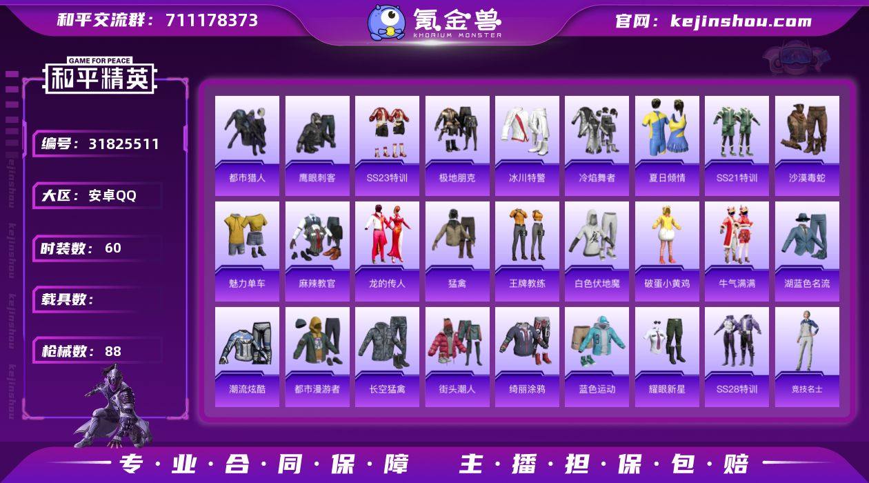 人身法素材号-1稀有5特效枪-地铁48点满天赋-角色-月烬之祷】Q等级35(2太阳)可二次 安卓Q-1稀有5特效枪4热门55套装88枪皮 21200热力值 2印记 历史超级王牌3星 【1稀有】 都市猎人 【5特效枪】 AKS-74U-森灵之息 (5级) DP-28-豹影疾电 (5级) AKS-74U-森灵之息 (5级) Mk14-福马献瑞 (5级) UMP45-萌骑冒险 (4级) 【4热门】角色-月烬之祷 青翼流星 炫彩糖果 龟仙人 鹰眼刺客 漫步者 破蛋小黄鸡 【1头盔】 幻影战神头盔 【飞行器】炫彩糖果飞行器安卓Q区-4特效枪-21200热力值-2王牌印记-55套装-88枪皮【稀有武器皮肤】: DBS-乌木金纹 蜜獾-精灵梦叶罗丽 SCAR-L-海盐豹豹 M416-红色方程式 M416-蓝色火焰 M416-糯团青竹 AKM-破晓战魂 AKM-龙的传人 SCAR-L-红色方程式 SCAR-L-玉兔迎春 SCAR-L-炫彩节奏 M16A4-幻世战舞者 GROZA-影袭 AUG-耀粉歌者 M762-彩虹符号 Mk47-乌木金纹 Mk47-炫光之旅 AC-VAL-天降萌叽 Kar98K-影袭 M24-影袭 莫辛纳甘-乌木金纹 M200-惊鸿侠骨 SKS-炫彩节奏 Mk14-乌木金纹 M417-惊鸿侠骨 UZI-红色方程式 UZI-影袭 UZI-天降萌叽 UZI-啾咪啾咪 UMP45-蓝色火焰 Vector-彩虹符号 汤姆逊-耀粉歌者 汤姆逊-天降萌叽 MP5K-乌木金纹 P90-乌木金纹 S1897-炫彩节奏 S12K-破晓战魂 S12K-玩趣呆呆 MG3-惊鸿侠骨 MG3-幻世战舞者 平底锅-惊鸿侠骨 爆炸猎弓-惊鸿侠骨 十字弩-异域银装 VSS-香桃花海【其他套装】: 都市猎人 Alan Walker 元素星魂 SS28特训 都市漫游者 龙的传人 潮流炫酷 蓝色运动 白色伏地魔 湖蓝色名流 绯格组合 漫步者 竞技名士 猛禽 长空猛禽 街头潮人 冷焰舞者 惊鸿侠骨 魅力单车 极地朋克 牛气满满 冰川特警 沙漠毒蛇 麻辣教官 鹰眼刺