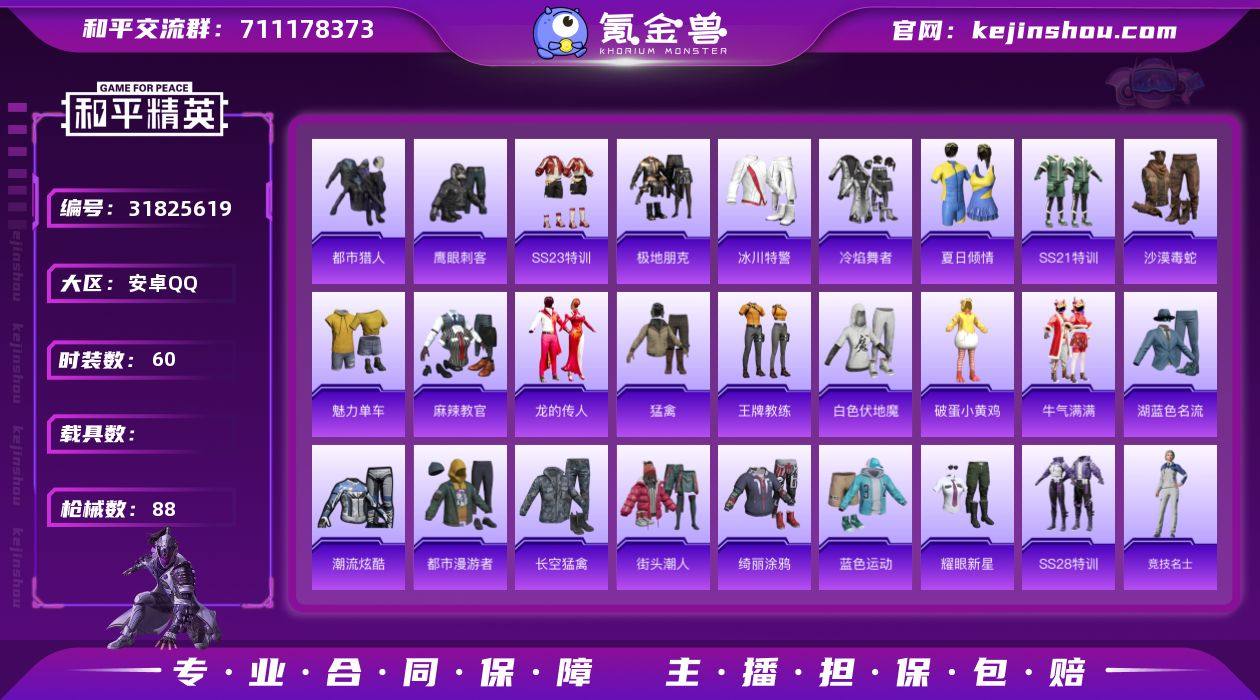 HX9063【都市猎人身法素材号-1稀有5特效枪-地铁48点满天赋-角色-月烬之祷】Q等级35(2太阳)可二次 安卓Q-1稀有5特效枪4热门55套装88枪皮 21200热力值 2印记 历史超级王牌3星 【1稀有】 都市猎人 【5特效枪】 AKS-74U-森灵之息 (5级) DP-28-豹影疾电 (5级) AKS-74U-森灵之息 (5级) Mk14-福马献瑞 (5级) UMP45-萌骑冒险 (4级) 【4热门】角色-月烬之祷 青翼流星 炫彩糖果 龟仙人 鹰眼刺客 漫步者 破蛋小黄鸡 【1头盔】 幻影战神头盔 【飞行器】炫彩糖果飞行器安卓Q区-4特效枪-21200热力值-2王牌印记-55套装-88枪皮【稀有武器皮肤】: DBS-乌木金纹 蜜獾-精灵梦叶罗丽 SCAR-L-海盐豹豹 M416-红色方程式 M416-蓝色火焰 M416-糯团青竹 AKM-破晓战魂 AKM-龙的传人 SCAR-L-红色方程式 SCAR-L-玉兔迎春 SCAR-L-炫彩节奏 M16A4-幻世战舞者 GROZA-影袭 AUG-耀粉歌者 M762-彩虹符号 Mk47-乌木金纹 Mk47-炫光之旅 AC-VAL-天降萌叽 Kar98K-影袭 M24-影袭 莫辛纳甘-乌木金纹 M200-惊鸿侠骨 SKS-炫彩节奏 Mk14-乌木金纹 M417-惊鸿侠骨 UZI-红色方程式 UZI-影袭 UZI-天降萌叽 UZI-啾咪啾咪 UMP45-蓝色火焰 Vector-彩虹符号 汤姆逊-耀粉歌者 汤姆逊-天降萌叽 MP5K-乌木金纹 P90-乌木金纹 S1897-炫彩节奏 S12K-破晓战魂 S12K-玩趣呆呆 MG3-惊鸿侠骨 MG3-幻世战舞者 平底锅-惊鸿侠骨 爆炸猎弓-惊鸿侠骨 十字弩-异域银装 VSS-香桃花海【其他套装】: 都市猎人 Alan Walker 元素星魂 SS28特训 都市漫游者 龙的传人 潮流炫酷 蓝色运动 白色伏地魔 湖蓝色名流 绯格组合 漫步者 竞技名士 猛禽 长空猛禽 街头潮人 冷焰舞者 惊鸿侠骨 魅力单车 极地朋克 牛气满满 冰川特警 沙漠毒蛇 麻辣教官 鹰眼刺