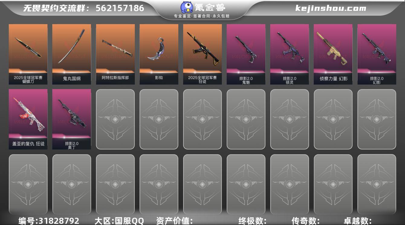 S193724(2025全球冠军赛套装/掠影//2.0套装)无畏契约/69等级/青铜段位/22英雄/25皮肤/资产20370/已使用R点415/剩余R点75/ 2025全球冠军赛-狂徒,2025全球冠军赛-蝴蝶刀,盖亚的复仇-狂徒,侦察力量-幻影,阿特拉斯指挥部-甩棍,鬼丸国纲,掠影//2.0-幻影,掠影//2.0-奥丁,掠影//2.0-骇灵,掠影//2.0-鬼魅,影钩