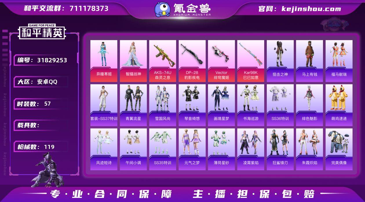 可改实名【异瞳寒姬 智耀战神 6枪5满级 】2粉装 6特效枪 57套装 119枪械 异瞳寒姬 智耀战神 马上有钱 福马献瑞 彩虹兔 4级Mk14-福马献瑞 满级AKS-74U-森灵之息 满级Vector-绯穹魔姬 满级Mk14-甜梦熊击 满级Kar98K-已巳如意 满级DP-28-豹影疾电 王牌印记4 热力值28559 N7929 和平精英买号永久包赔带二次营地ID:984719612