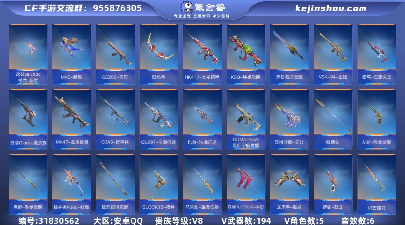 贵族等级:V8 王者武器数:23 v武器数:194 卖家说:连号买三角洲310M还有几个热门皮肤 王者贵7基本皮肤都有 CF差500贵9 买了绝对不找回