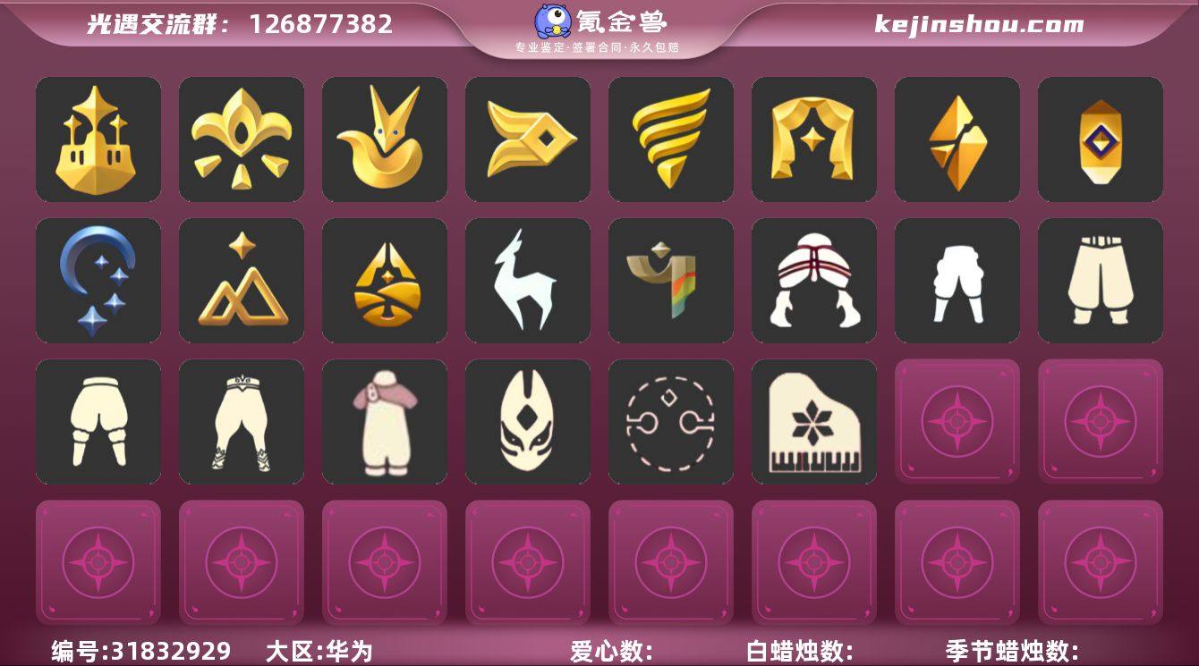 [17307828]iOS官服 邮箱账号 4珍稀物品 12毕业季 6毕业图 324蜡烛 【珍稀物品】白枭(帝企鹅发),玫瑰花,透明蝶翼斗,彩虹围巾(五塑彩带斗) 【季节已毕业】青鸟季,小王子季(王子季),风行季,潜海季,表演季,破晓季,欧若拉季(欧若拉),追忆季,夜行季,拾光季,归巢季,九色鹿(九色鹿季) 【完成地图】晨岛,云野,雨林,霞谷,墓土(暮土),禁阁 【礼包】风之旅人白袍(超凡风之旅人礼包),女巫裙,南瓜(冥龙南瓜),绊爱(绊爱斗篷)(绊爱礼包),橘子(大橘大利),雪花(雪花发夹),贝壳(贝壳发饰),兔子(玉兔头饰)(玉兔发饰)(兔子发饰),四叶草(四叶草头饰),彩虹耳机,枯角(巫树犄角),鹿角(圣诞鹿角),创始人(创始人斗篷),围巾(小王子斗篷)(小王子围巾),欧若拉之翼,福娃(福娃礼包)(春之日礼包)(铜钱斗),小提琴(凯旋提琴),秋千(情人秋千),茶桌(花憩茶桌),小狐狸(狐狸背包),雪花球(雪花水晶球) 【裤子】青鸟尊贵蓬头裤子(蓝色燕尾服),飞天裤(柔缎花边连)(九色鹿丝带裤),王子服(小王子套装),蓝绿裤(高领舞服),武士裤,背带裤,搓澡巾 【面具】夜行毕业面具(棕熊面具),呼吸面具(潜水面具),黄眉企鹅面具 【面饰】黑框眼镜(粗框眼镜),青鸟毕业面饰(青鸟面饰),红耳机 【项链】围巾(肩带) 【发型】小王子发型,单侧绑发(单边小辫),飞天盘发(九色鹿丸子头),留辫蘑菇头,虚荣,归巢毕业发型(五塑彩羽发),若笠(箬笠) 【头饰】平顶帽,蓝色音乐会(蓝色音乐符),牛仔帽(西部帽),羽毛发饰(多羽发饰) 【斗篷】冥龙斗篷,燕尾斗篷,遥鲲斗篷(双翼遥鲲斗),粉红绒毛斗篷(绒毛斗篷),青鸟毕业斗篷(青鸟斗篷),玫瑰褶边斗篷,绿芽,海洋斗 【配饰】鲲灯(追忆之书),相机(季卡相机),玫瑰花,二重奏挂画(合奏挂画),雨伞,高音钢琴(白色高脚钢琴)