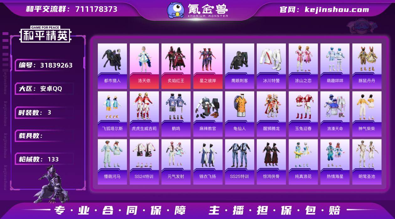 M1046567【身法号3粉装-1特效枪都市猎人,浪漫天命 洛天依】安卓手Q-3粉装-1特效枪-92套装-133枪皮-5王牌印记-英勇黄金Ⅲ-40279热力值【3粉装】星之彼岸,炙焰红王,角色-洛天依【1特效枪】DP-28-豹影疾电[3级]【2稀有】都市猎人,浪漫天命【1飞行器】黄族统领飞行器【1头盔】童趣迷兔头盔【1背包】梦幻火箭背包【219其它衣服和枪皮】燃烧卡路里,SS25特训,瑞龙福将,懵萌河马,醒狮腾龙,格斗先锋,SS17特训,麻辣教官,特殊使命,热情海星,极速竞梦,海盐绵绵冰,白色伏地魔,王牌教练,蓝彩潮人,异彩先驱,萌趣咩咩,SS23特训,SS18特训,智慧隐士,惊鸿侠骨,纯真浪花,深蓝色名流,冰冻风暴,豚鼠丹丹,玩偶服-卖崽青蛙,冰爽风暴,滨海假日,夏日音浪,团圆交子,田园牧歌,牛气满满,角色-欧布奥特曼,福星高照,纯白誓言,漫步者,飞行日记,角色-白光莹,SS20特训,都市漫游者,湖蓝色名流,元气发射,长空猛禽,神气柴柴,飞狐塔尔斯,炫蓝之夏,牛气冲天,酸甜橘柚,锦衣飞扬,空投萌叽,虚音幻奏,幻彩翩翩,绚烂繁星,SS19特训,电音精灵,娇憨猪猪,轻风白浪,明鸳圣池,飞驰魅影,柠萌假日,SS21特训,SS22特训,涂山之恋,霓虹极客,龟仙人,云魄琉璃,SS24特训,鹰眼刺客,竞技名士,音速流光,暖心橘喵,魅力单车,狙击之神,绯格组合,玉兔迎春,虎虎生威吉莉,龙的传人,黑色伏地魔,霓虹街区,妙红点点,野性战心,酷潮明星,极地朋克,龙魂突击队,冰川特警,热血青春,鹤鸣,AWM-纯真浪花,Mini14-筑梦精灵,Kar98K-飞驰魅影,AWM-垂柳戏鸭,SCAR-L-海盐豹豹,平底锅-甜心亚梦,GROZA-福马献瑞,AC-VAL-乌木金纹,MG3-妙红点点,Mk47-妙红点点,G36C-懵萌河马,S686-生命誓言,SCAR-L-玉兔迎春,AUG-青春冒险家,SPAS-12-田园牧歌,莫辛纳甘-懵萌河马,QBZ-洛神天依,Kar98K-影袭,UZI-天降萌叽,蜜獾-娇憨猪猪,汤姆逊-异彩先驱,S1897-飞驰魅影,Kar98K-红色方程式,