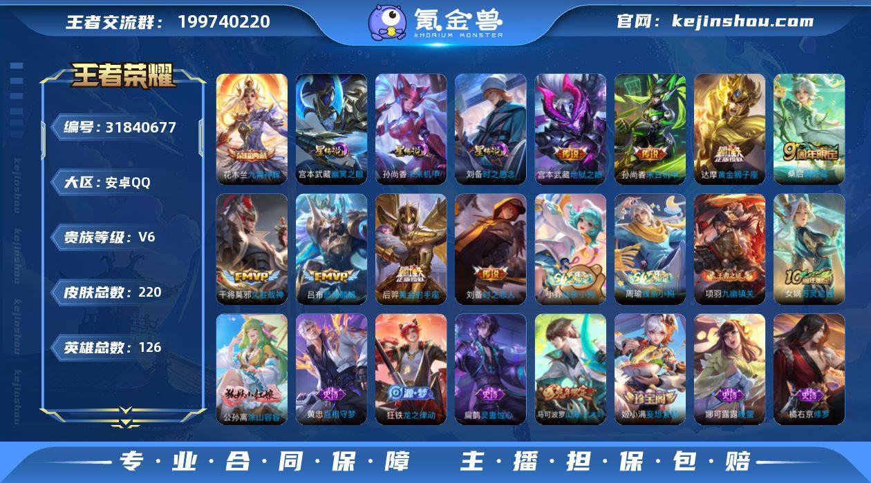 贵族等级:V6 典藏皮肤数:1 珍品无双皮肤数:0 无双皮肤数:0 珍品传说皮肤数:0 传说皮肤数:8 史诗皮肤数:61 皮肤数:220 英雄数:126 段位:传奇王者 卖家说:带一个v11两千万战力的火影号