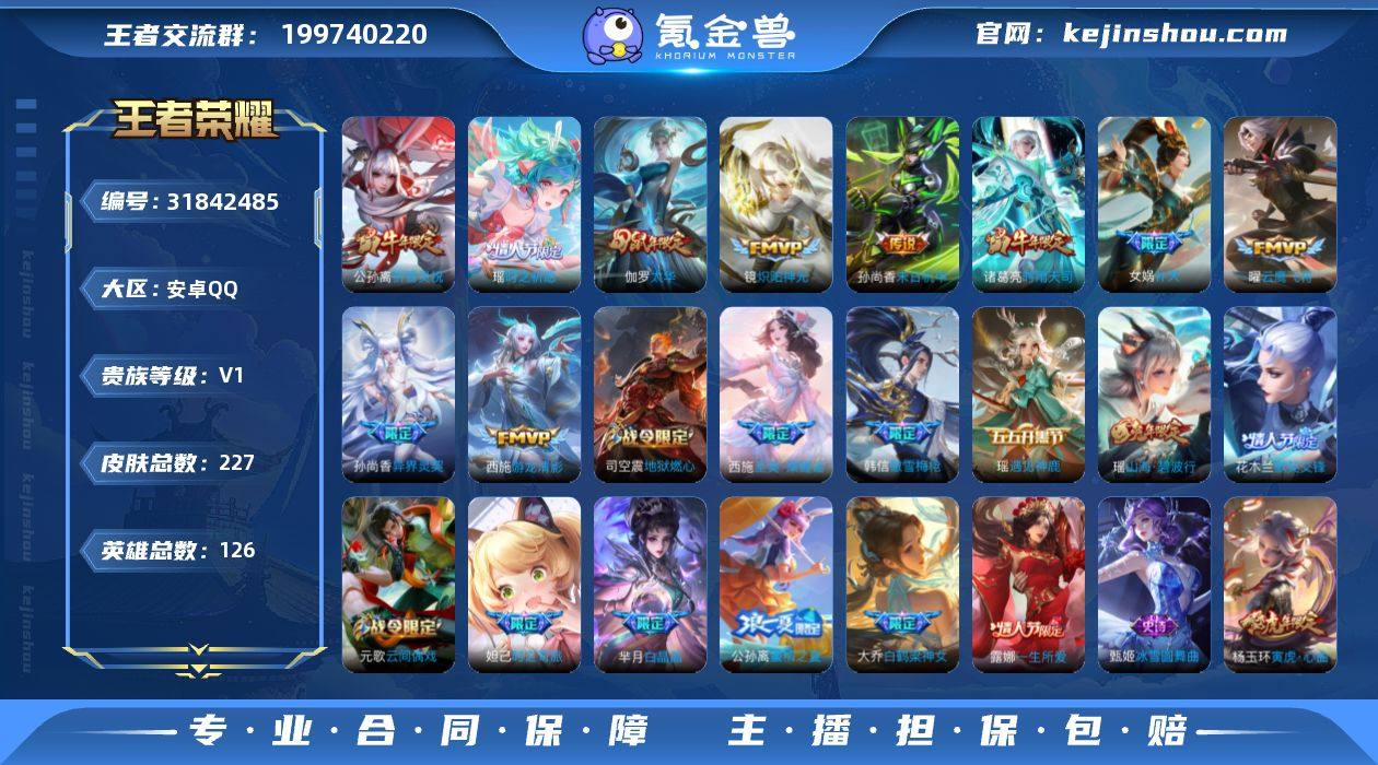 安卓Q【1.1万战小国标后裔】-V6-至尊星耀III段位-59英雄-55皮肤-4传说-17史诗 【传说皮肤】:澜愿照九州拓,桑启鸣野蒿,公孙离祈雪灵祝,后羿黄金射手座 【限定皮肤】:狄仁杰阴阳师,赵云皇家上将,狄仁杰魔术师,项羽海滩派对,后羿辉光之辰,雅典娜黎明之约,公孙离祈雪灵祝 【年限皮肤】:后羿辉光之辰,公孙离祈雪灵祝,澜愿照九州拓 【赛季限定】:东皇太一噬灭天穹,太乙真人谧流熔炉,钟馗虚灵犬护,甄姬逆浪荇歌,雅典娜黎明之约 【战令限定】:孙膑茶境仙,马超访茗客,周瑜线条小狗 【史诗皮肤】:赵云皇家上将,狄仁杰魔术师,孙尚香水果甜心,妲己魅力维加斯,吕布圣诞狂欢,吕布末日机甲,小乔缤纷独角兽,后羿辉光之辰,李元芳逐浪之夏,白起星夜王子,孙策猫狗日记,狄仁杰鹰眼统帅,蒙犽龙鼓争鸣,雅典娜黎明之约,澜赏金猎手,孙膑茶境仙,后羿石田雨龙,周瑜线条小狗 【其他皮肤】:项羽海滩派对,韩信教廷特使,韩信街头霸王,典韦黄金武士,亚瑟死亡骑士,甄姬花好人间,后羿阿尔法小队,狄仁杰阴阳师,孙尚香沉稳之力,诸葛亮掌控之力,戈娅危途狂花,莱西奥西部游侠,盘古敬我三分,东皇太一噬灭天穹,苍苍林狼骑,太乙真人谧流熔炉,典韦铁骨偃魂,马超访茗客,西施雪境奇遇,钟馗虚灵犬护,张良灵野札记,露娜命运加冕,甄姬逆浪荇歌,项羽帝国元帅,后羿精灵王,蔡文姬蔷薇王座,百里守约绝影神枪,女娲尼罗河女神,司马懿魇语军师,上官婉儿修竹墨客,马超幸存者,澜孤猎,司空震启蛰 【营地ID】:1772146422 【小国标】:小国标后羿
