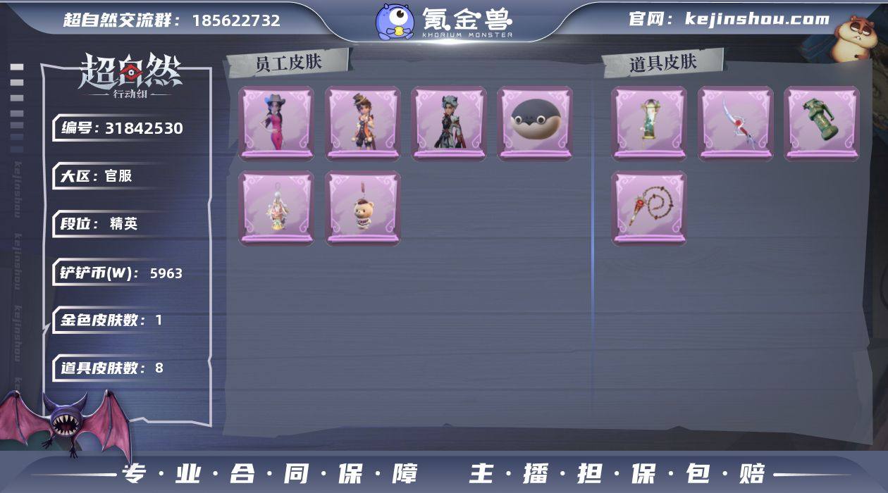 【283】薇薇安-海月息潮,艾伦-黎明猎手,阿念-庆宴绮愿,爱丽丝-耀眼的你,刺刀-铂刺与红萼,长鞭-缚誓之锁,传送按钮-浮生一梦,摸金符-海洋之心,腰包-红运福虎,音响-月光奏鸣曲,电击枪-权杖的许诺,闪光弹-金戈玄铜,舞台中心,鹏友摇,七仔摇,新年摇,抬手,锤子舞,举牌,蝴蝶步,豪华定制烟花,拜年,萨卡班甲鱼头套,牛啤背包,晚安小熊,拂云仙,孤独对望,卷珠帘,珊瑚海,心同野鹤,流金照庭,默认工牌,轻躯鹤立,兰,爱德华,薇薇安,逍遥,零,小黄,爱丽丝